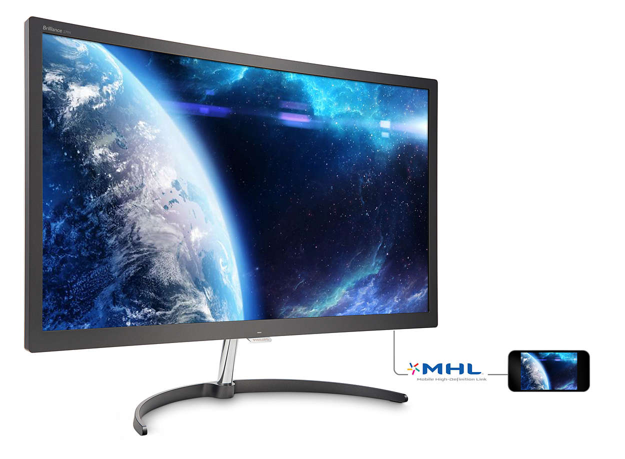 The Philips Brilliance 297X6 is a 27-inch curved monitor with a 1920×1080 resolution. Its general list of features include an MVA panel, AMD FreeSync support, flicker-free technology, and the ability to display mobile device content on the screen. Additional specifications are below.