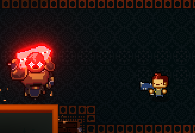 Possibly weak to water, given their fire composition. They dash and dart around the room, stopping only to emit a ring of bullets outward. The blue variants are stronger and harder to destroy, but they only lurk further down below in the Gungeon.