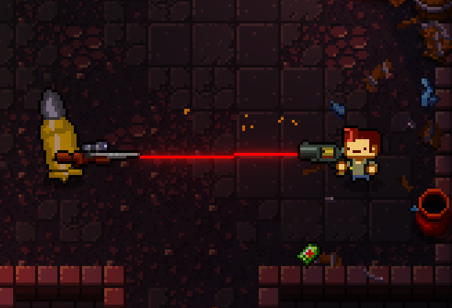 Mostly a support class. These enemies hide in a far corner of the Gungeon room – providing a buff to their allies. When you shoot at them, they tend to flee in fear, trying to reach a safe place to set up their magic spells once more.