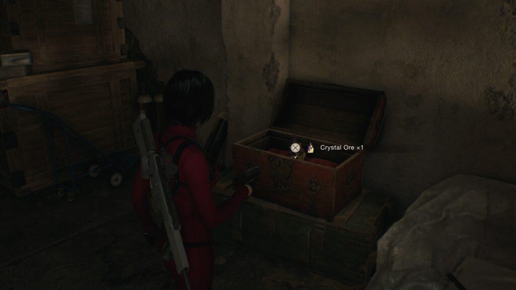Red Beryl: Leaving the Merchant near the start of the chapter, Ada will grapple into a construction area. The treasure is hanging off the crane in the southeast corner of the room. This is the same room where you’ll have to take out two Brutes.