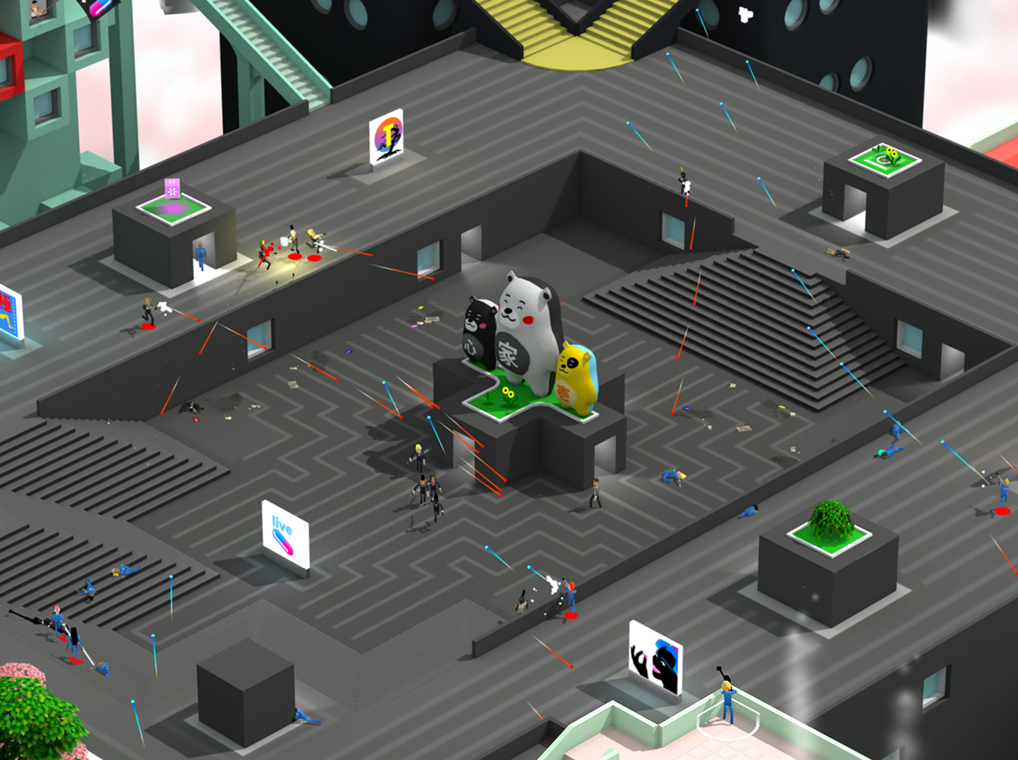 To begin with, you enter this crowded level with the camera fixed on the center of the map, where you can rotate as per normal to see all civilian AIs. The twist however, is that not all of those civilians are AI. Up to 7 (currently) of them could be other players pretending to be AI.