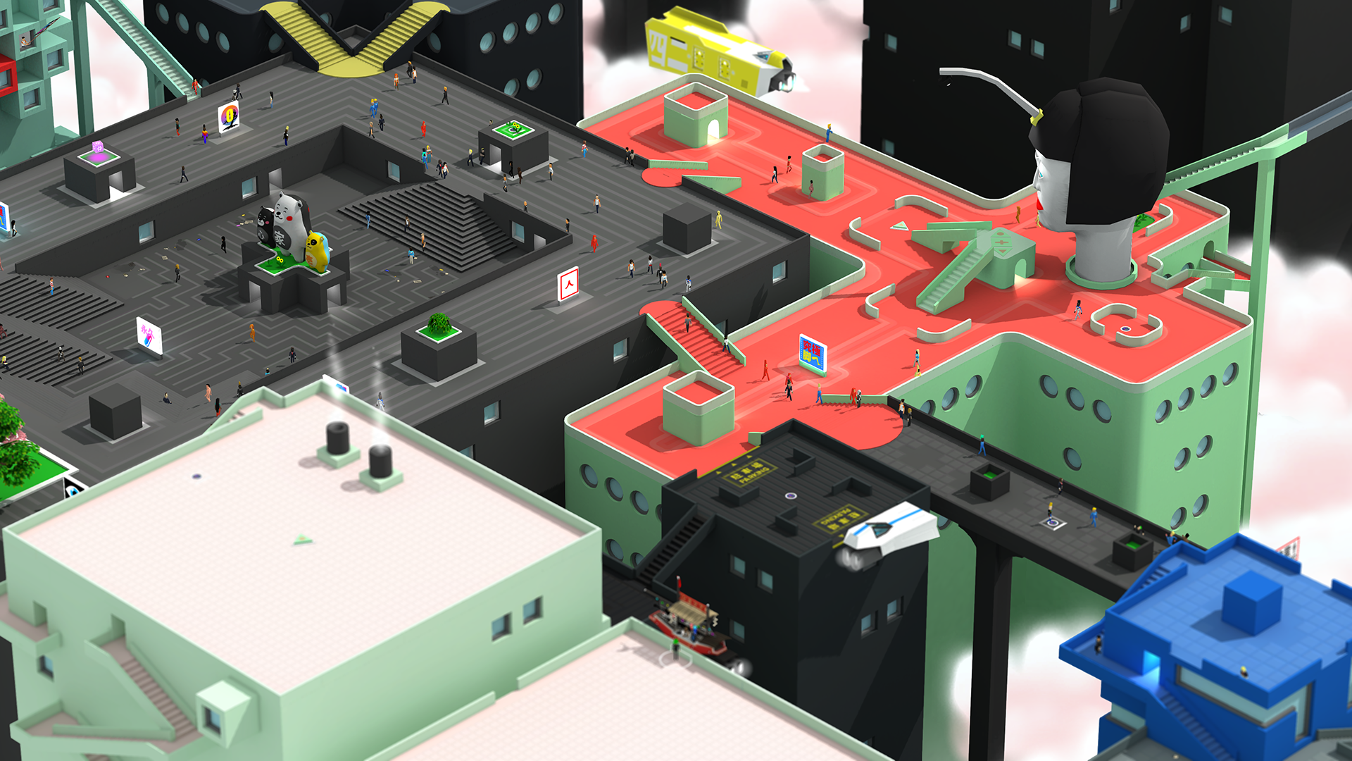 Our initial discussions when we first conceived Tokyo42 centered around creating a busy, crowded world for the players to use crowd mechanics against each other. The first visual reference for this was a design group called eBoy, who do these beautiful isometric cityscapes, packed with activity and color.