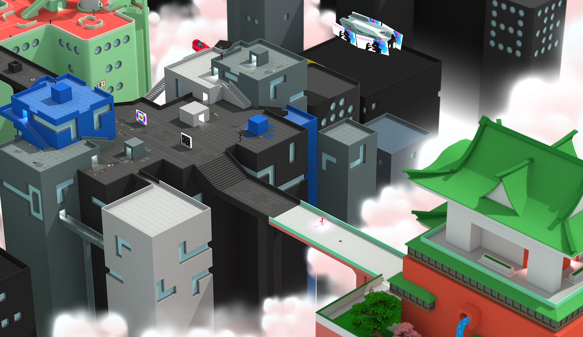 Tokyo42 has a very unique isometric aesthetic with bright colors and a distinctly “Japanese” look. What inspired the game’s art direction? It seems very different from the usual dark, noir, cyberpunk fare.