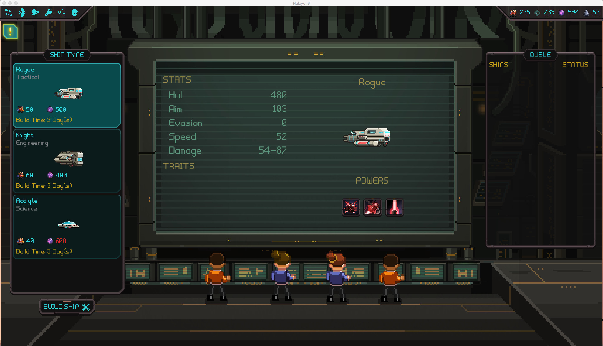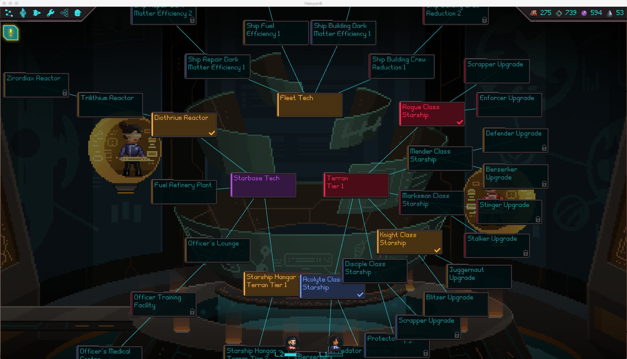 Massive Damage Inc. has pulled out all the stops when it comes to art design. The game is just simply stunning. Characters are unique in design and races are easily distinguishable and original. Spend enough time in-game fighting various enemies and you’ll eventually notice similarities in ship design which will give away some of their future move possibilities. For a game that features intense combat, special effects, a galactical map to explore, a massive Starbase to build upon and deep management within well laid out menus it’s incredible art style feels fleshed out across the board. However, my eyes weren’t the only ones pleased. Halcyon 6: Starbase Commander is also accompanied by a mesmerizing orchestral score.