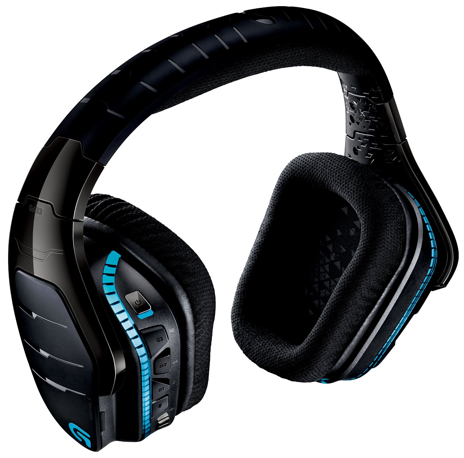 The G933 has a molded plastic design that looks quite unlike other headset on the market, and it’s comfy to wear even after long stretches of gaming—which is something of a necessity. It has earcups that can swivel and a padded headband that doesn’t get uncomfortable from extended use. It’s big, and it’ll fit over both your ears, even if you have a particularly large head. The problem with some of the low-end headsets is that they tend to sit on, rather than over the ears, and that can get uncomfortable fast. You’ll encounter no such issue with the G933.