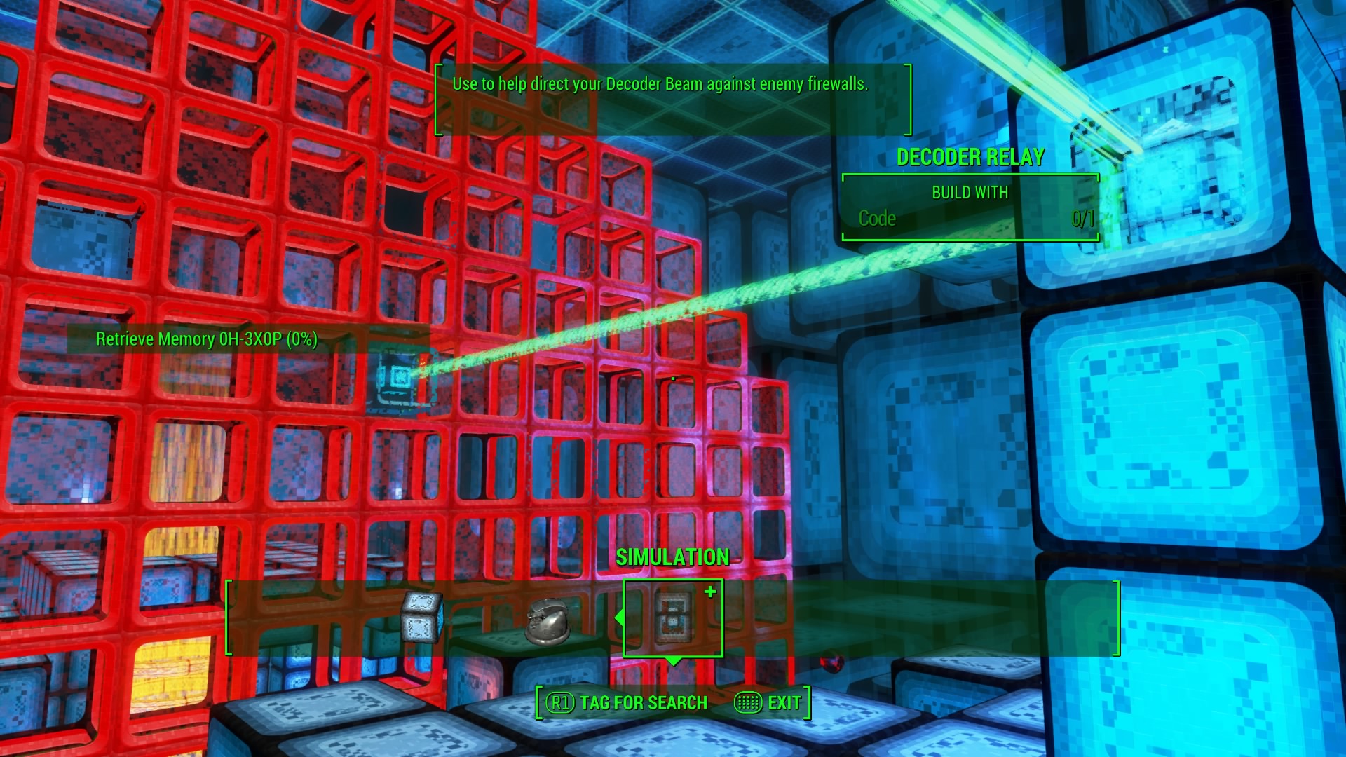 - Redirect the green laser to clear the Firewall on the left (mentioned above) — build a Code Block tower and use the Relay to hit the Firewall weak point.