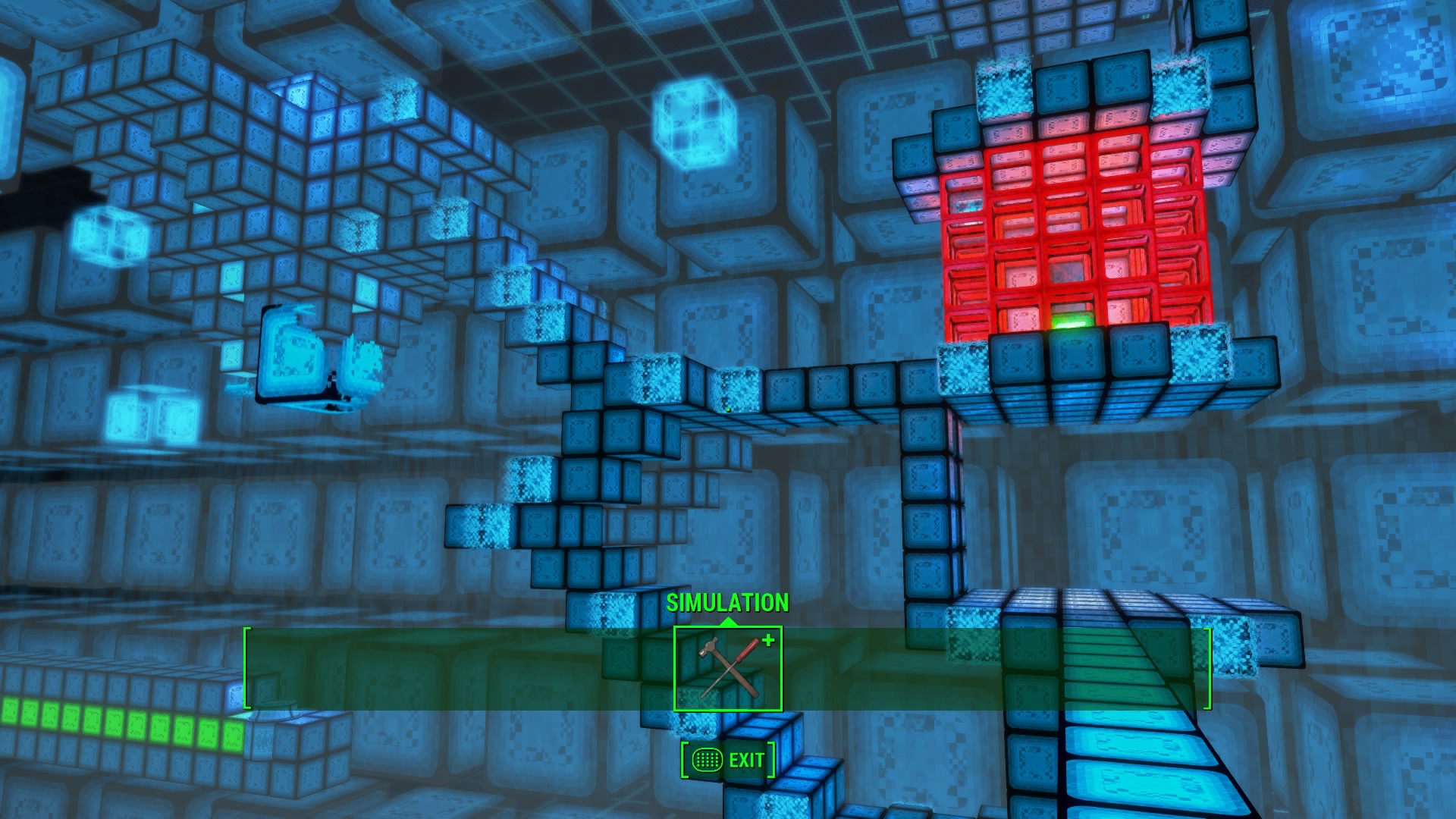 - Collect the Code Blocks around the starting platform. Build a bridge to the center pyramid and redirect the green laser to the Firewall on the left.