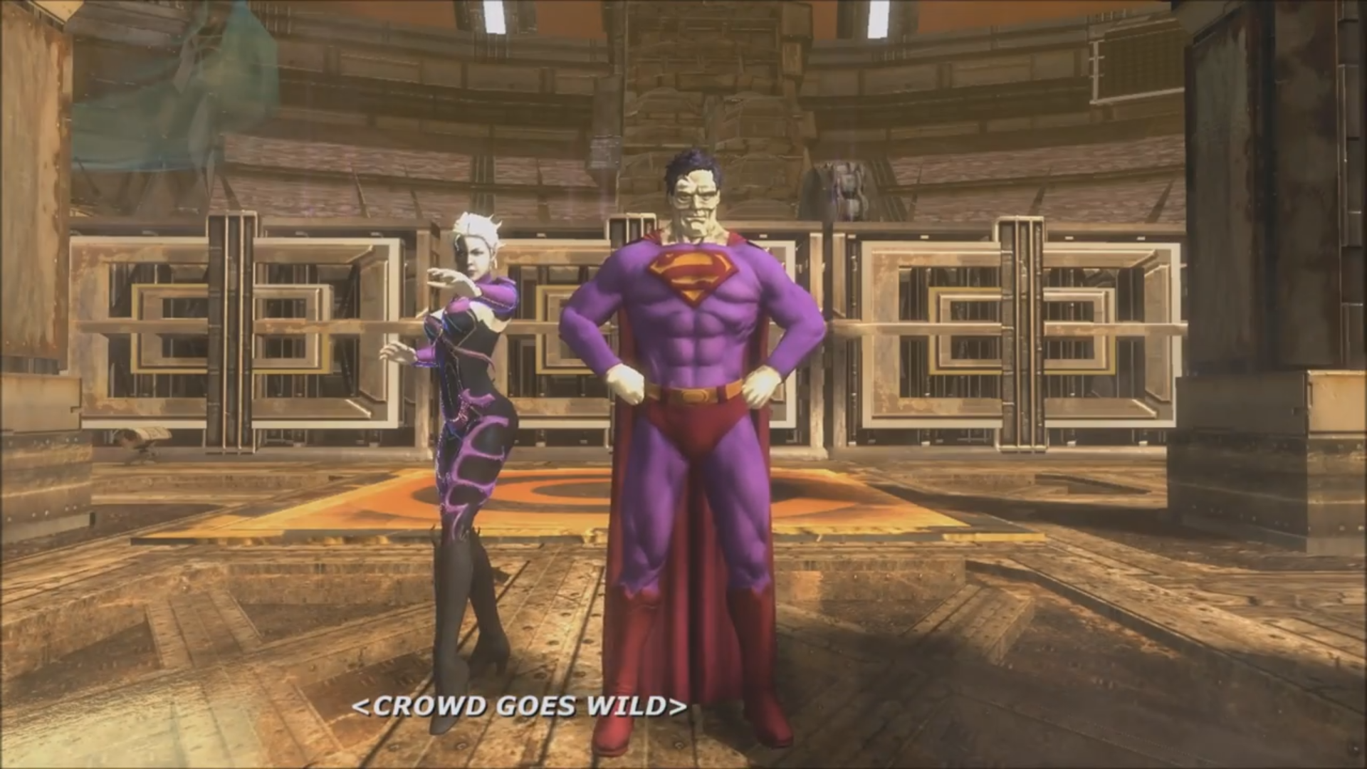 TheJusticeLeagueArcadeActIIIACT III: The entire Justice League heads to War World, thinking Mongul is the only one who could use freedom from imprisonment, given the beating that Green Lantern had given him at the start of the game. Mongul forces Green Lantern and Batman to face off against Lady Shiva and Bane. They win, and refuse to abide by Mongul’s rules to take their lives. The Flash and Wonder Woman are forced to face off against Morgaine Le Fey and Soloman Grundy in a similar sort of death match, eventually leading to a final round between Superman and Wonder Woman vs. Eclipso and Bizarro. The Justice League manages to break into Mongul’s War World lair, but can’t prevent his escape into the Phantom Zone. Superman rushes in after them, and fights Mongul and General Zod in the Phantom Zone. Defeating evil, a Guardian of the Universe sentences Mongul to the Phantom Zone for the rest of eternity.