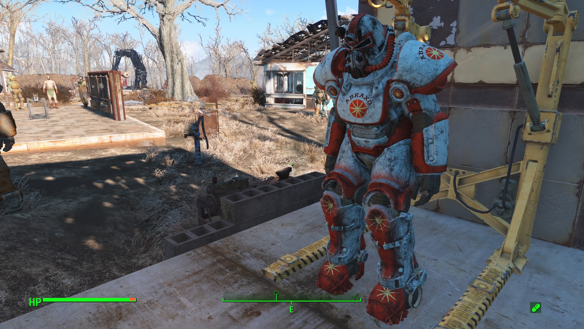 Use the Power Armor Station (yellow rig) to customize T-51 Power Armor with the Abraxo Cleaner and Sugar Bombs Custom paint.