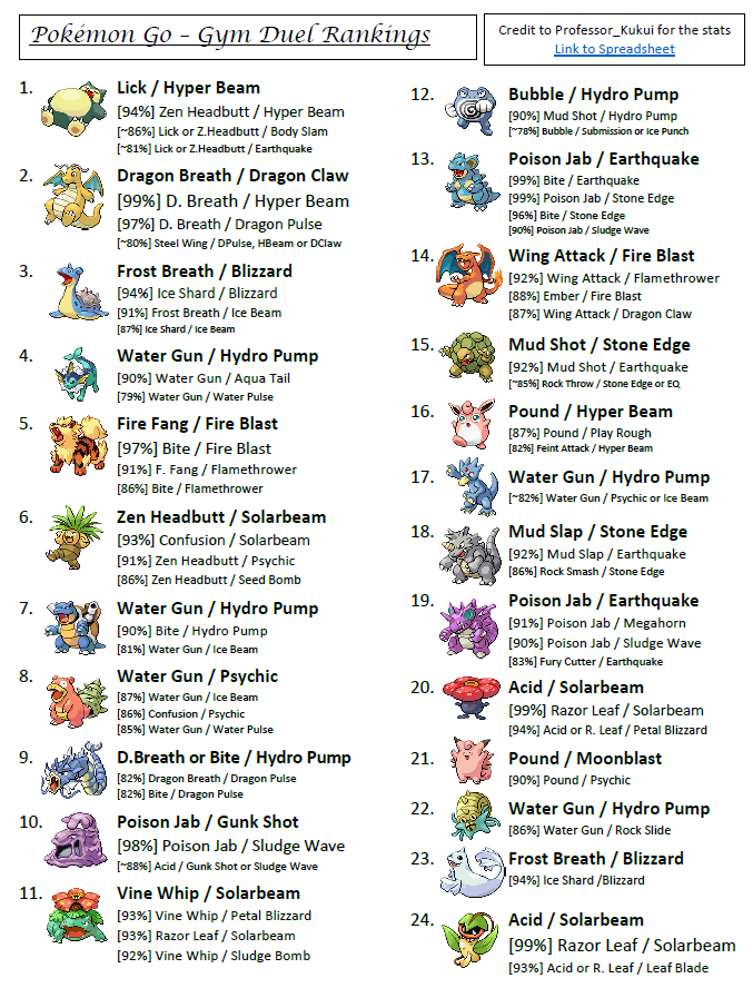 It’s always good to stay flexible and keep plenty of movesets or Pokemon ready depending on your opponents, but these sheets are still a cool way to get an easy overview of which Pokemon are objectively best without having to strain your eyes staring at a spreadsheet.
