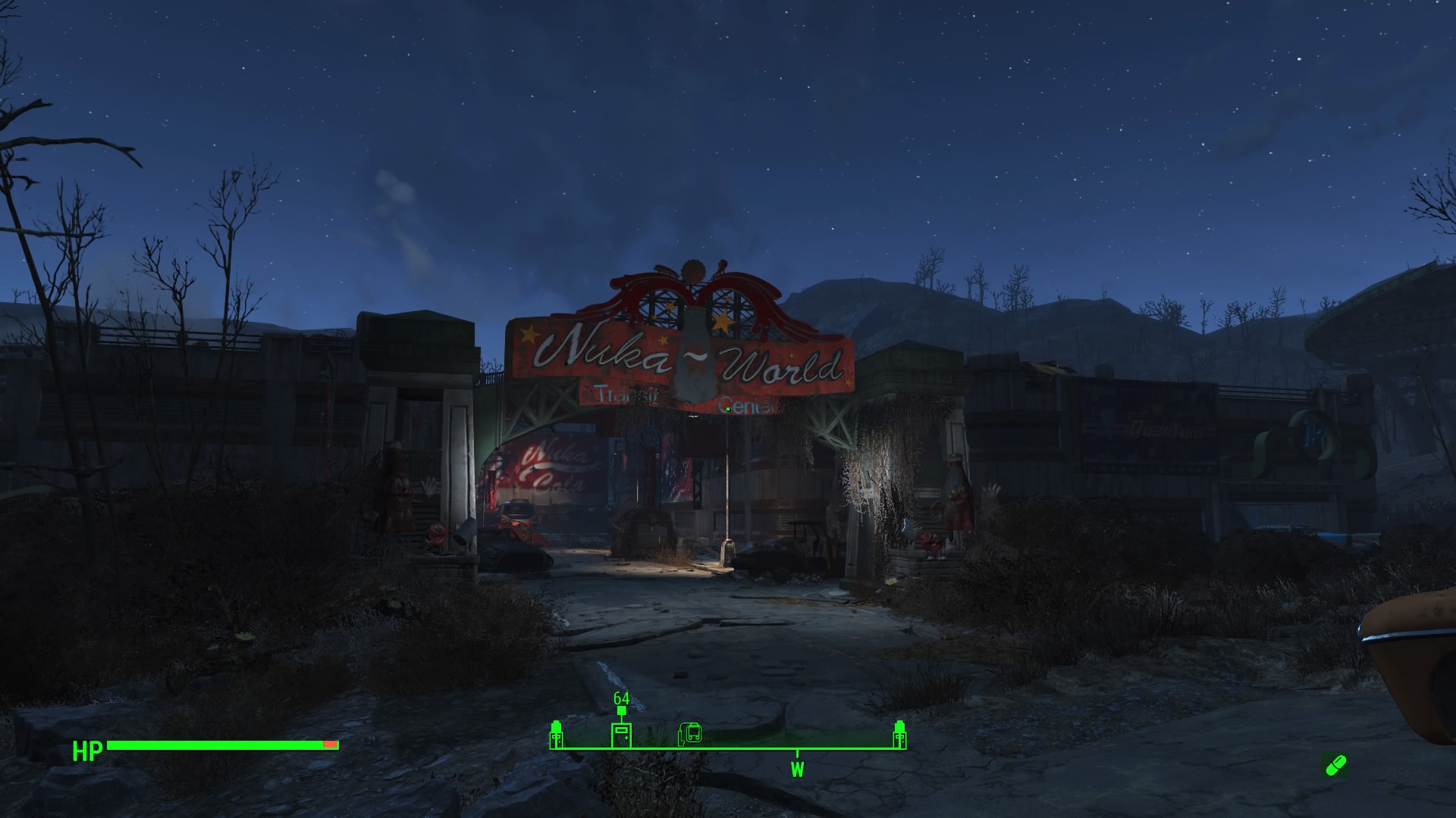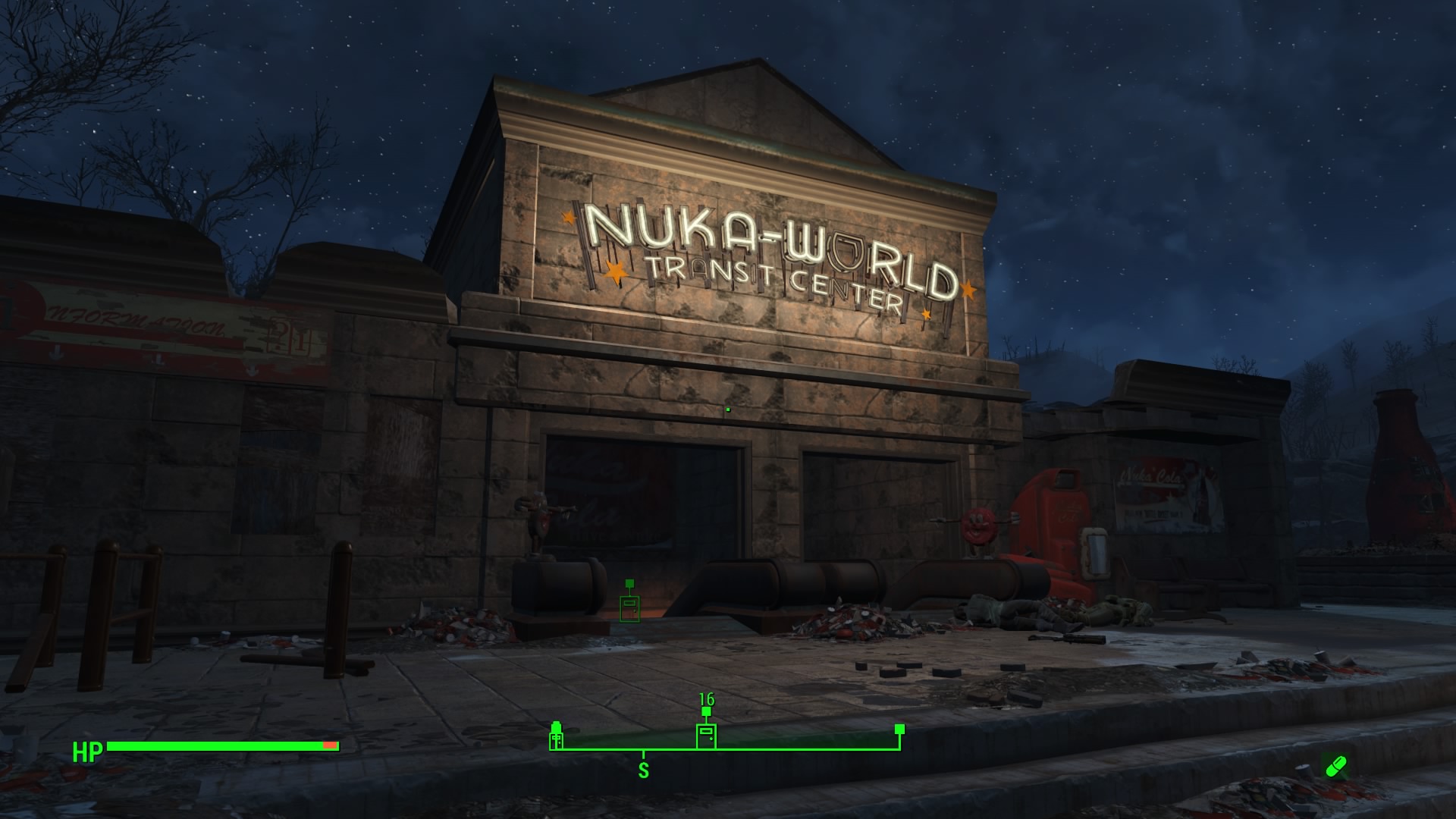 - Travel to the Nuka-World Transit Center marked on your map, or just follow our gallery.