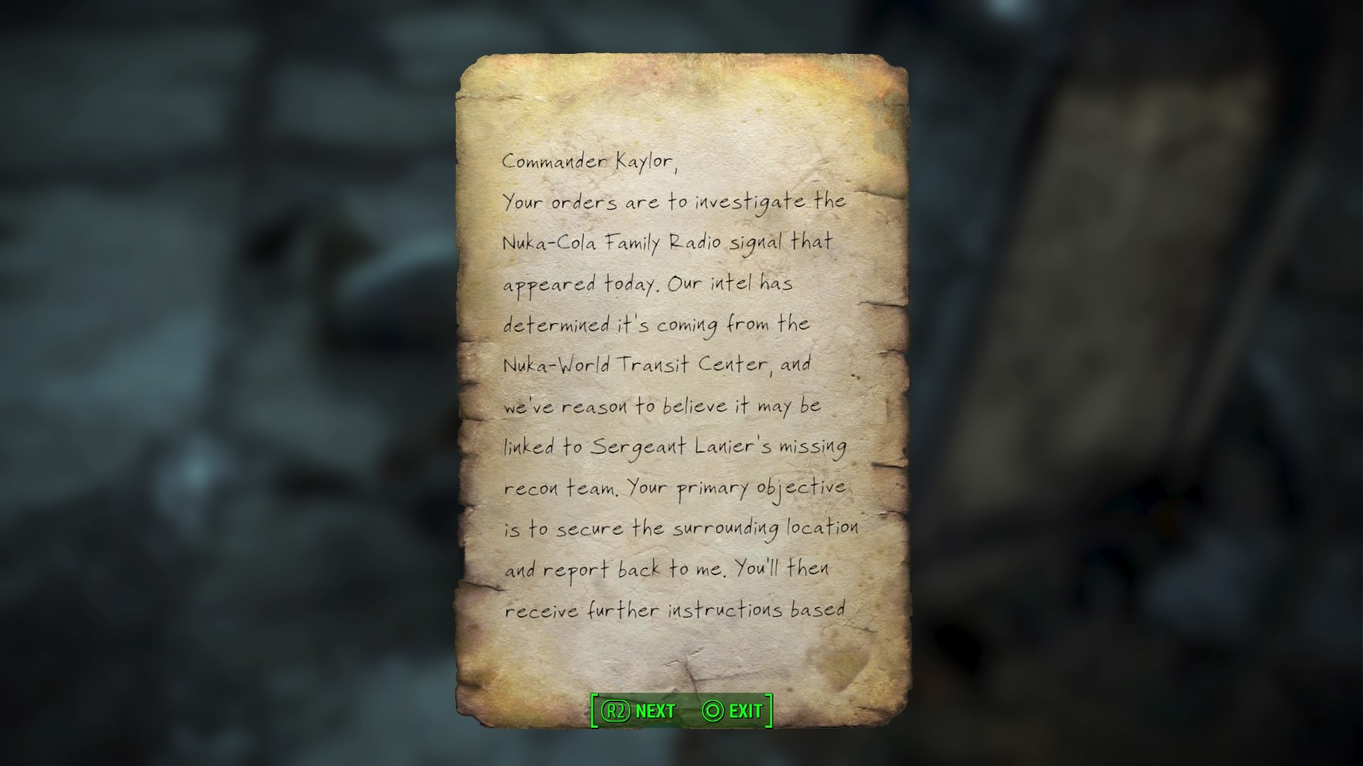 - Defeat Commander Kaylor and collect the document “Kaylor’s Orders” from their body.
