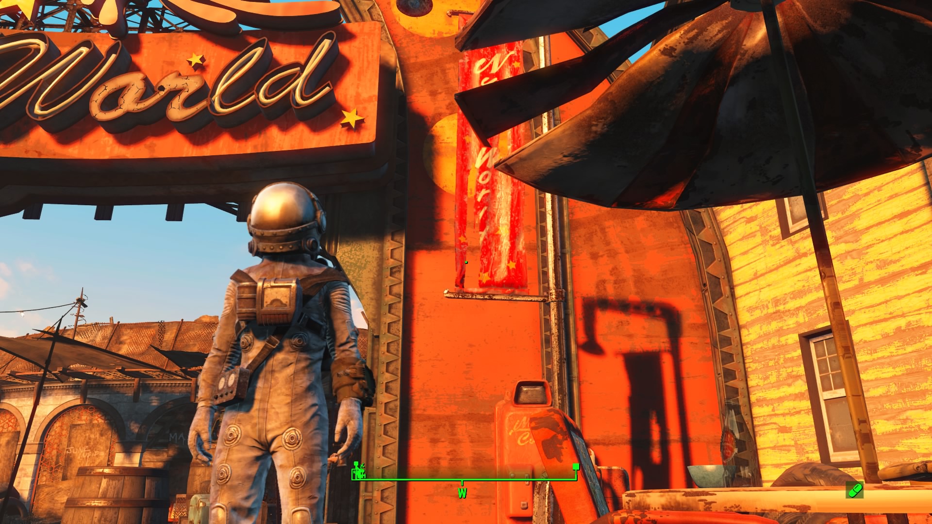 - Location: World of Refreshment – Found behind a locked door. Use the nearby cracked wall to access the security room and hack the terminal to unlock the Power Armor cage.