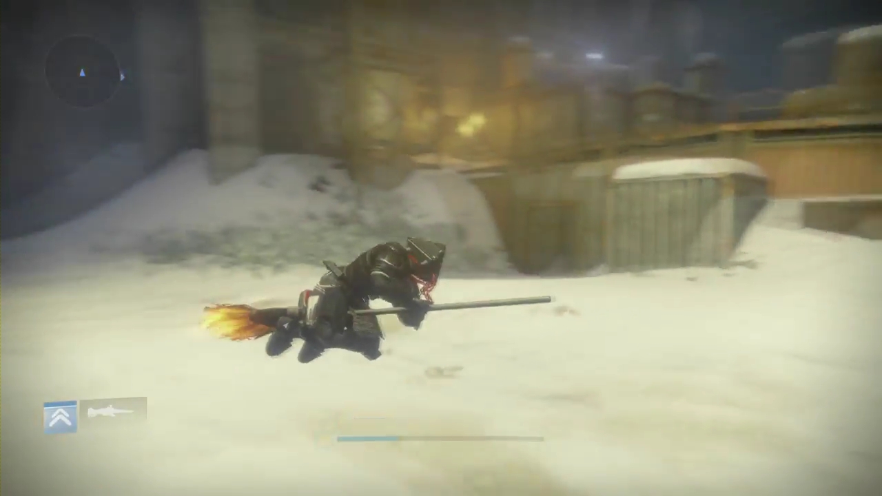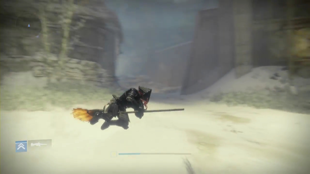 Jump up onto the shelf and you’ll see a broom laying there. Hold down the button prompt when you get close, and recover a wizarding ride. Just check your inventory (or take a trip to the postmaster if your inventory was full) to equip this Sparrow and go for a ride.