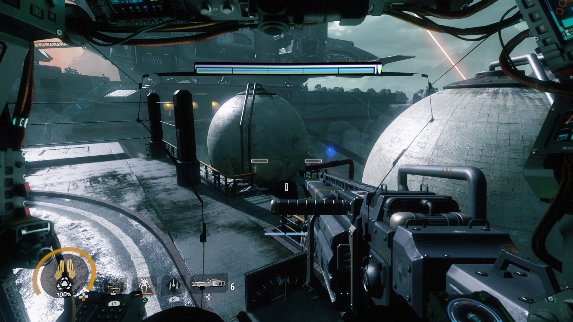 - Pilot Helmet #40: Ride the nearby lift up, and exit the interior to get a good view of the ship in the far distance. As the road bends left, look to the ledge on the right. There’s a pair of white spheres on the right — the last helmet in this mission is on the pipe jutting out from the back-right sphere.