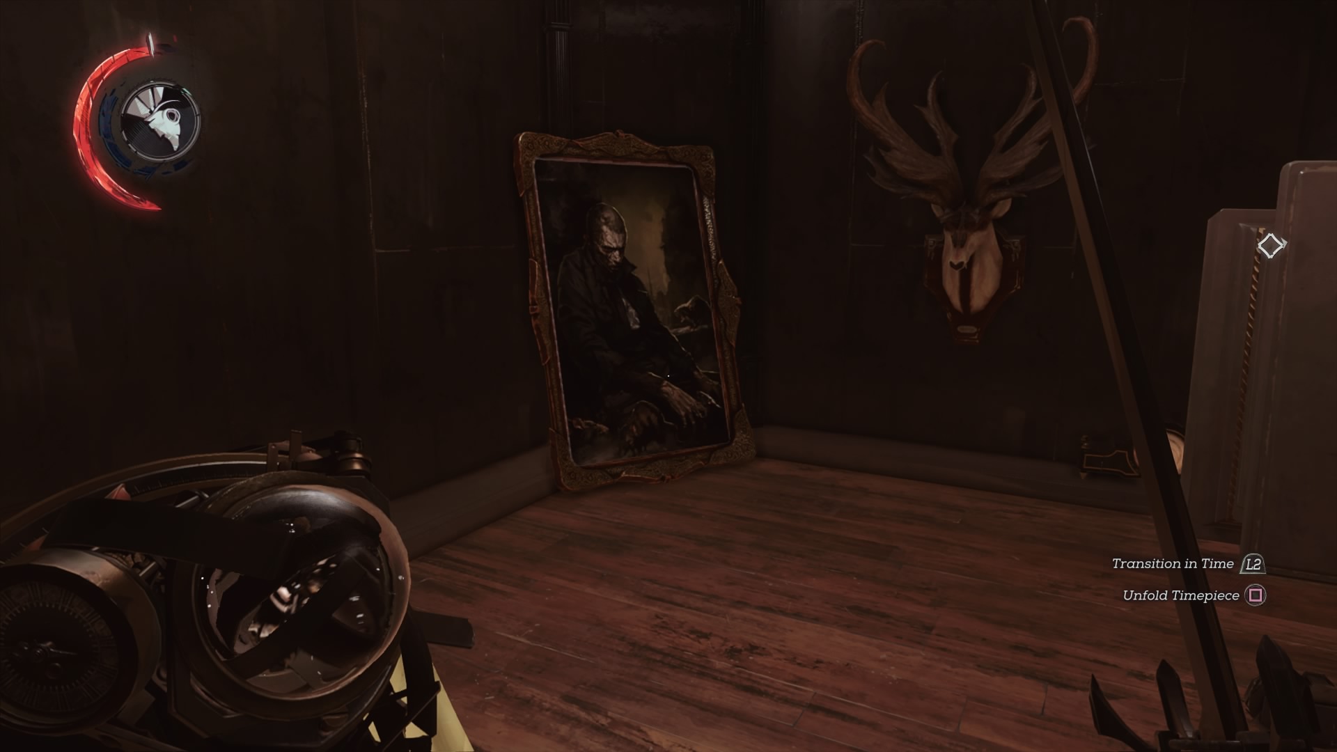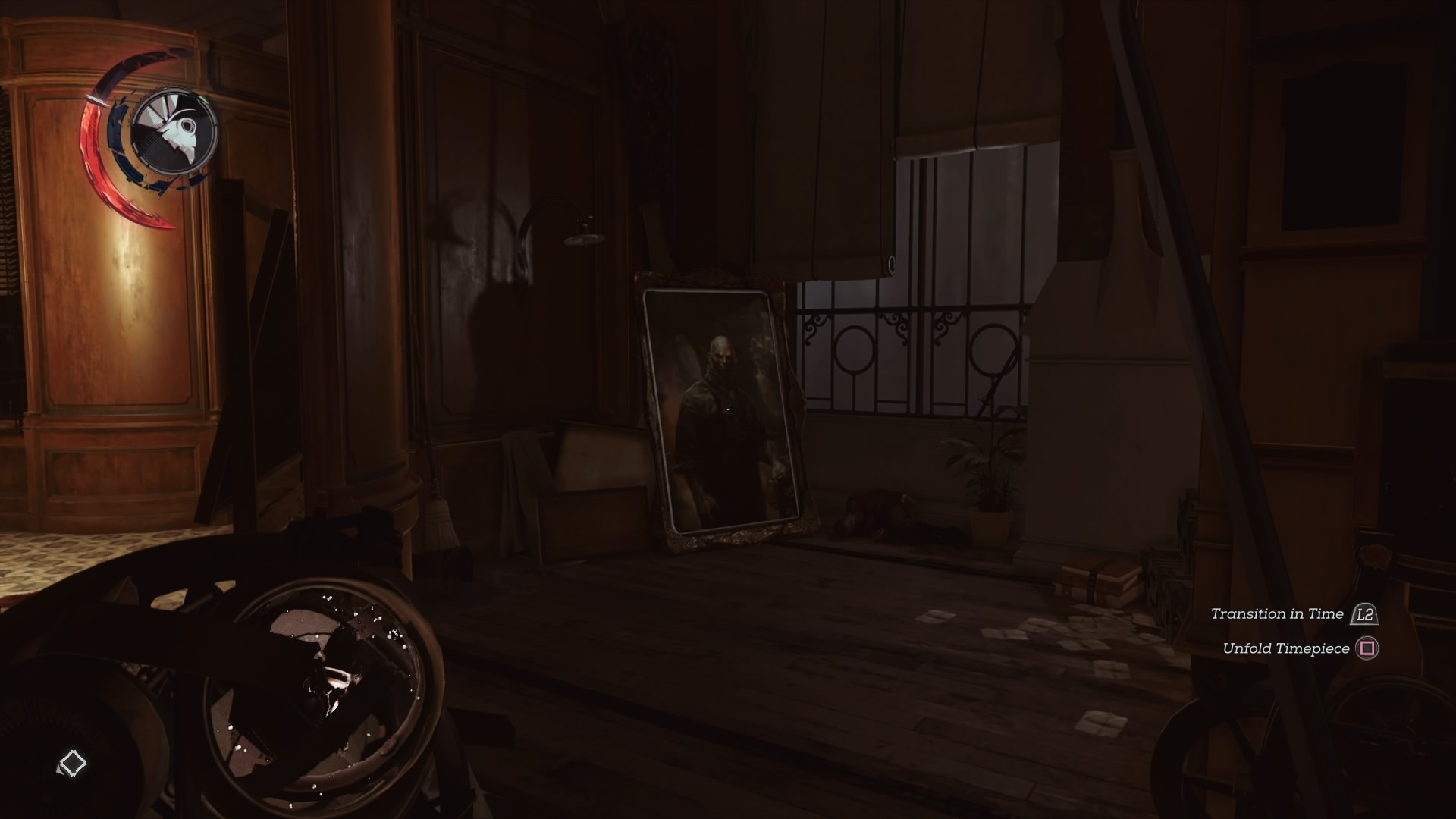- Go to the past and shoot both red ropes (upper left and upper right) to weaken the supprts, creating a path in the present. Climb up and into the upper room. Turn right and go near the window. The painting is only available in the past.