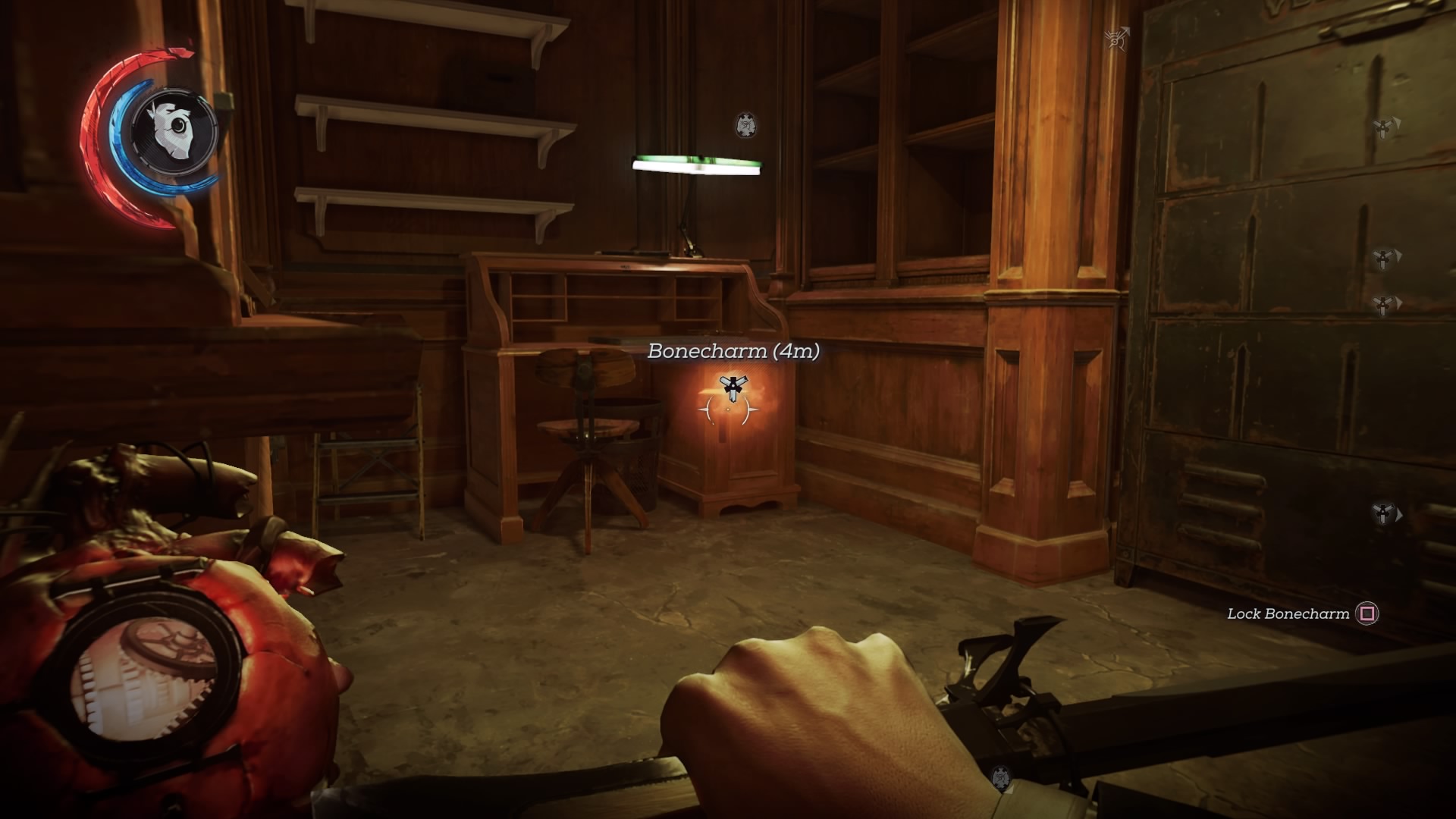 - Bonecharm #5: Found in the Vice Overseer’s Office on the third floor of the HQ. Check the cabinet of the desk past the slideshow to collect it.