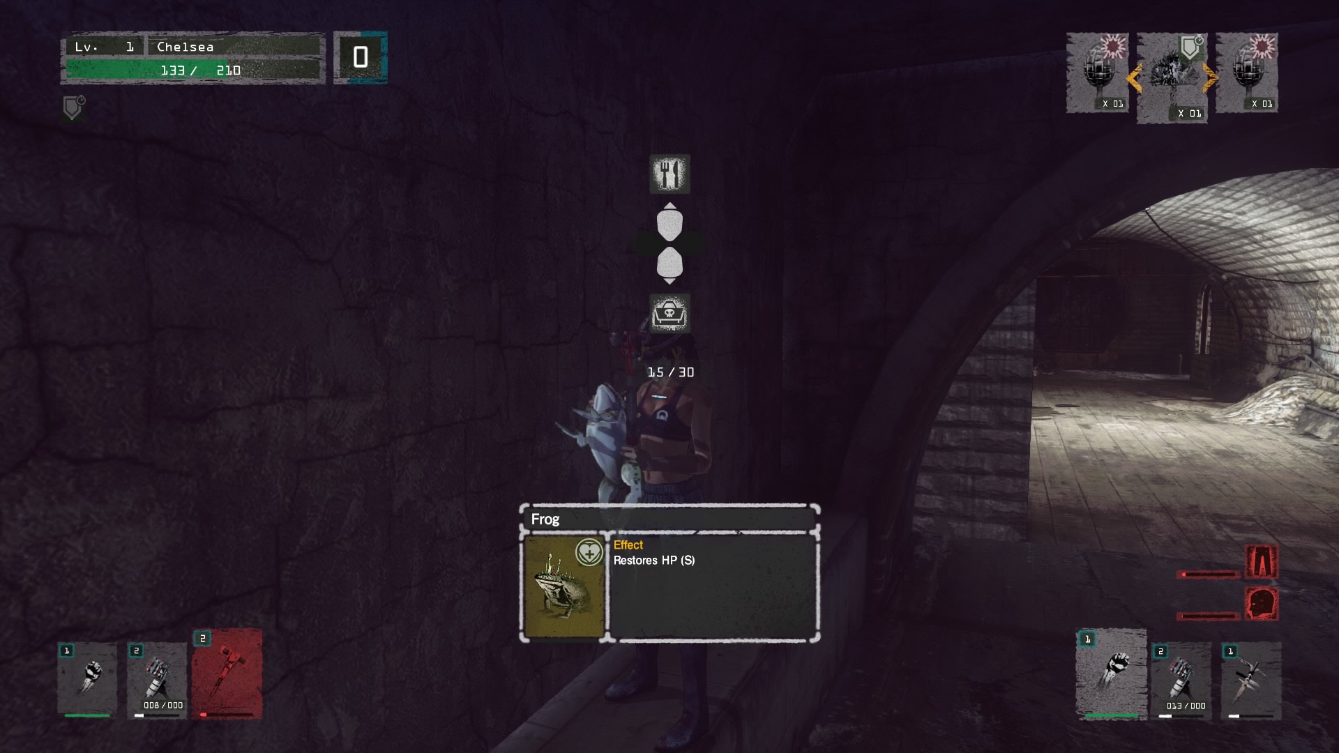 Low on healing items? 1F TAMARA is the first floor in the game, and the first two rooms are populated by 2-5 frogs, ripe for the picking. All you have to deal with are a couple of Mk. 1 Tubers — some of the easiest, slowest enemies in the game. No problem, right? Even a Lvl. 1 Fighter can handle this run.