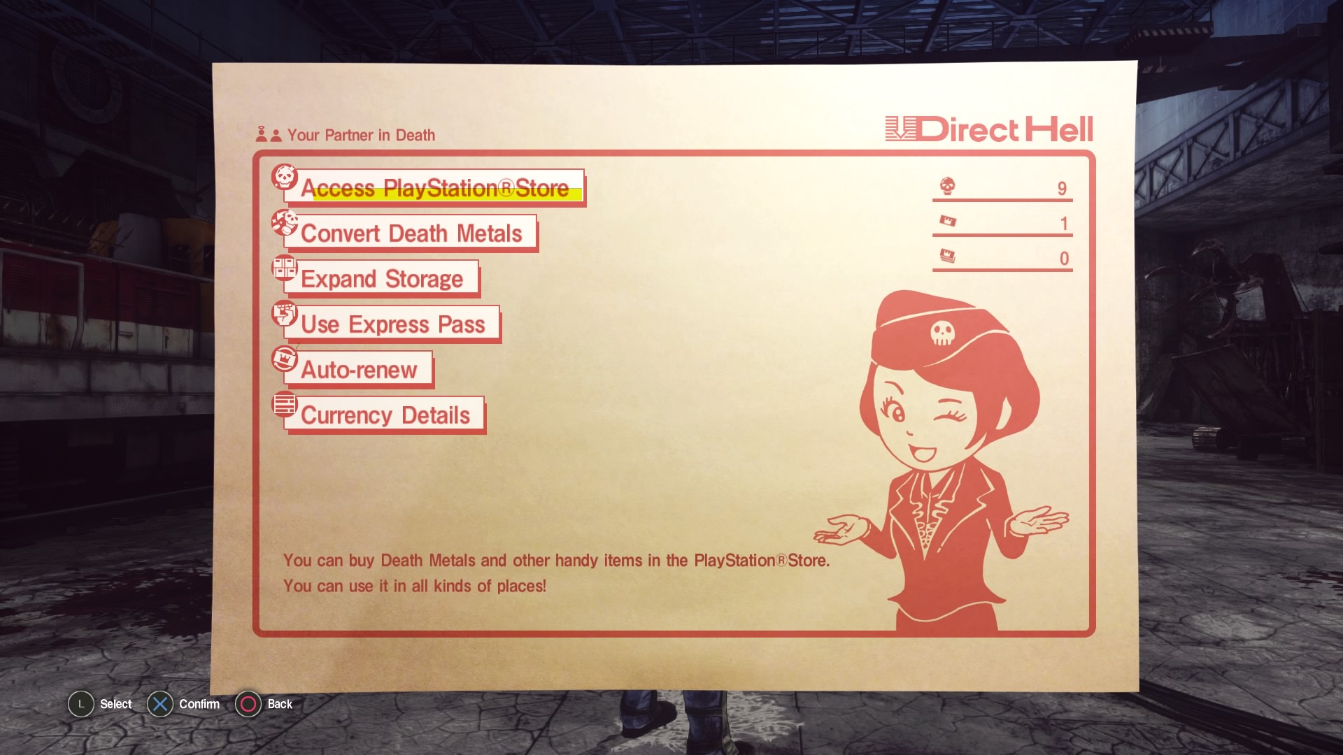 - Access Playstation Store (Used to purchase Death Metals with real-world cash.)