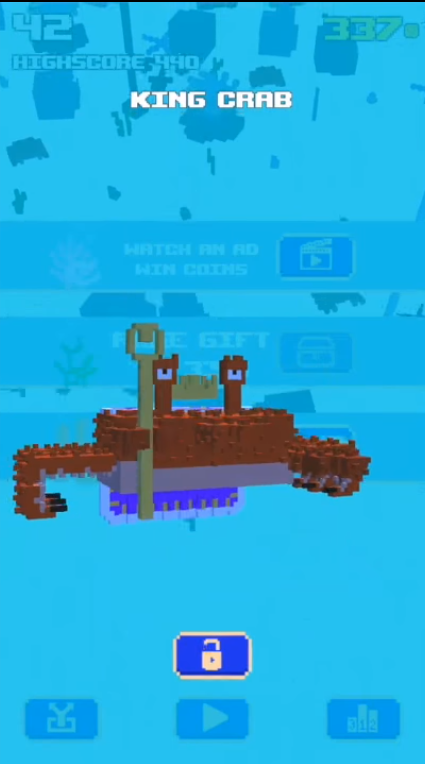 So, what’s Swimmy Sea all about? Like all the Crossy games on iOS and Android, you move through a dangerous (and stylishly pixelated) environment, dodging hazards and collecting coins to unlock new characters. There’s a giant roster of people to play as, but the unique choices listed here can only be unlocked after completing special hidden challenges. You won’t get the King Crab, Seabeard, or Triton with coins alone.