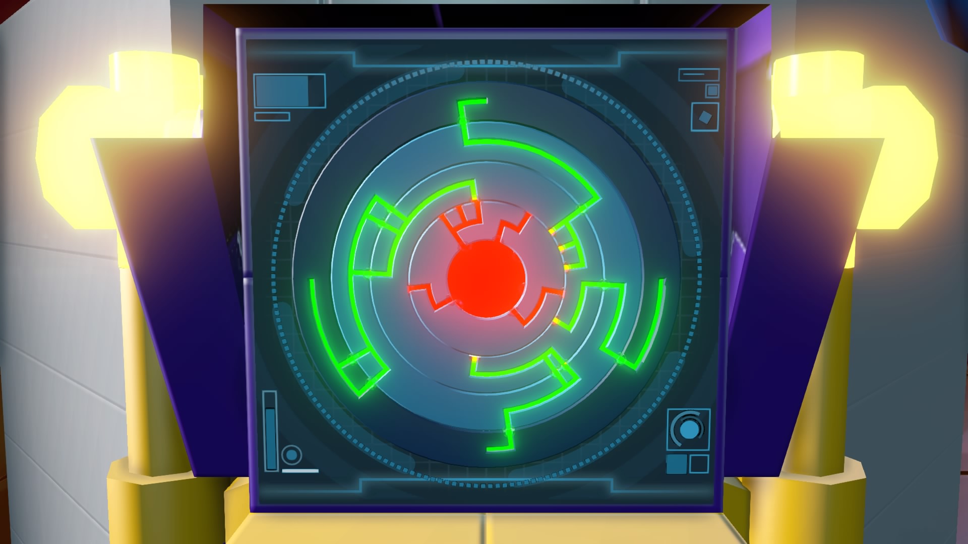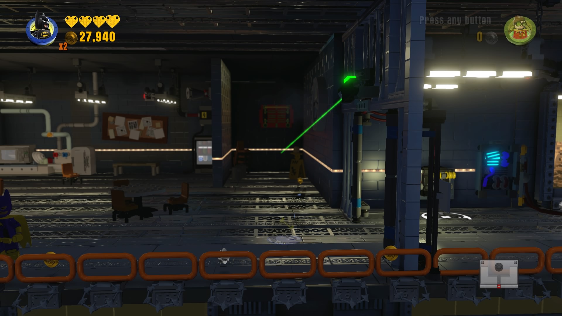 The Joker’s cell has 3 defensive walls. Let’s bust through them all! First, climb through the Robin Chute (Vent Access) to reach the drone controls. The three switches change which type of drone appears.