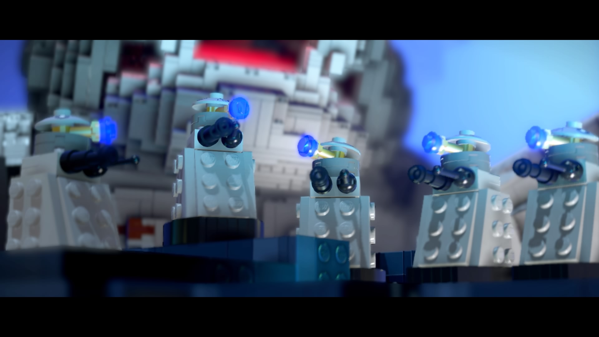 - Enter Thermal Detective Mode (Red) and follow the footsteps to the right. Hit the big red button and build the bricks to create a giant radio.