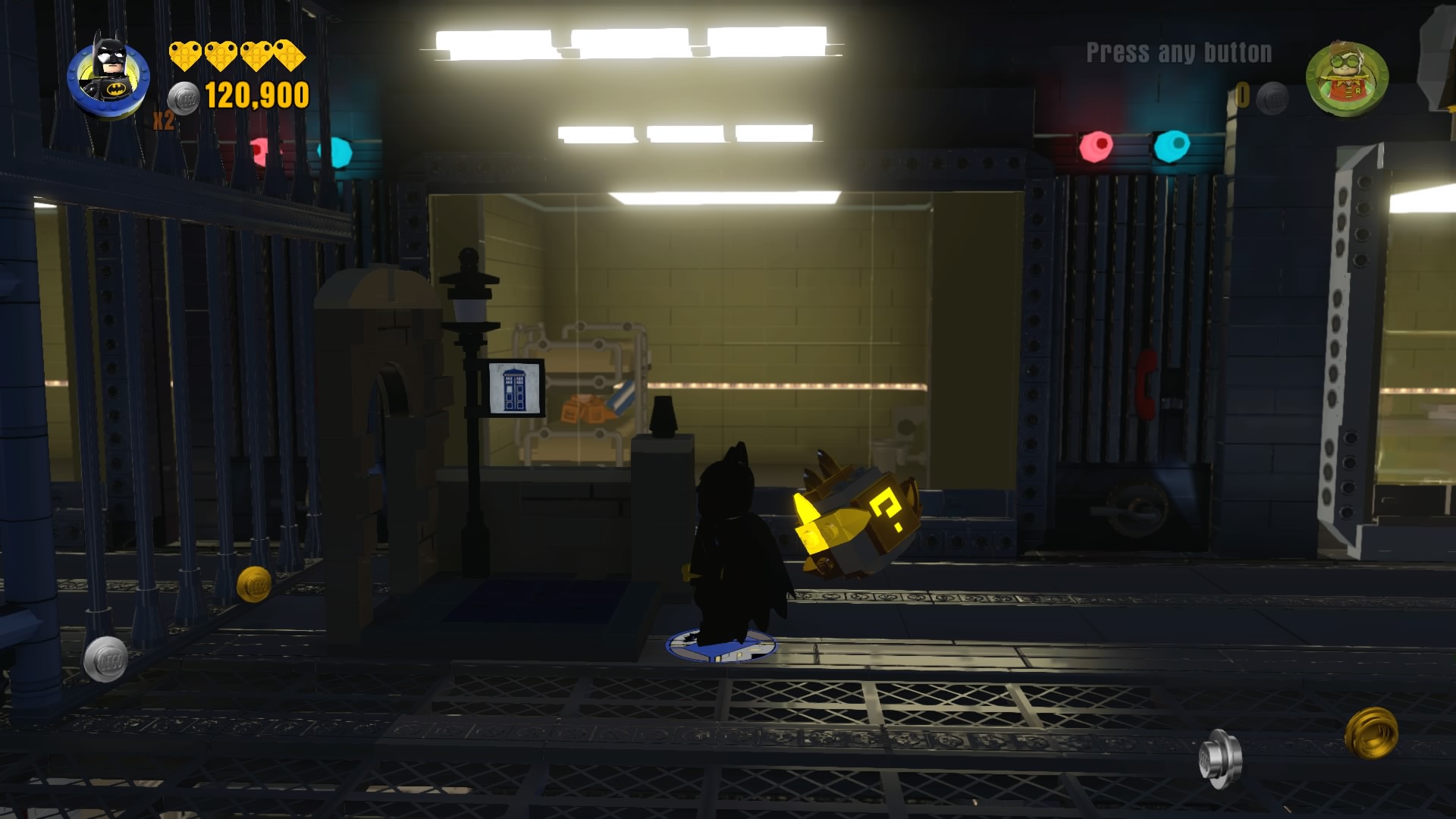 - Minikit #6: Still in the optional area, smash everything and rebuild all three missing parts of the Arkham Asylum set.