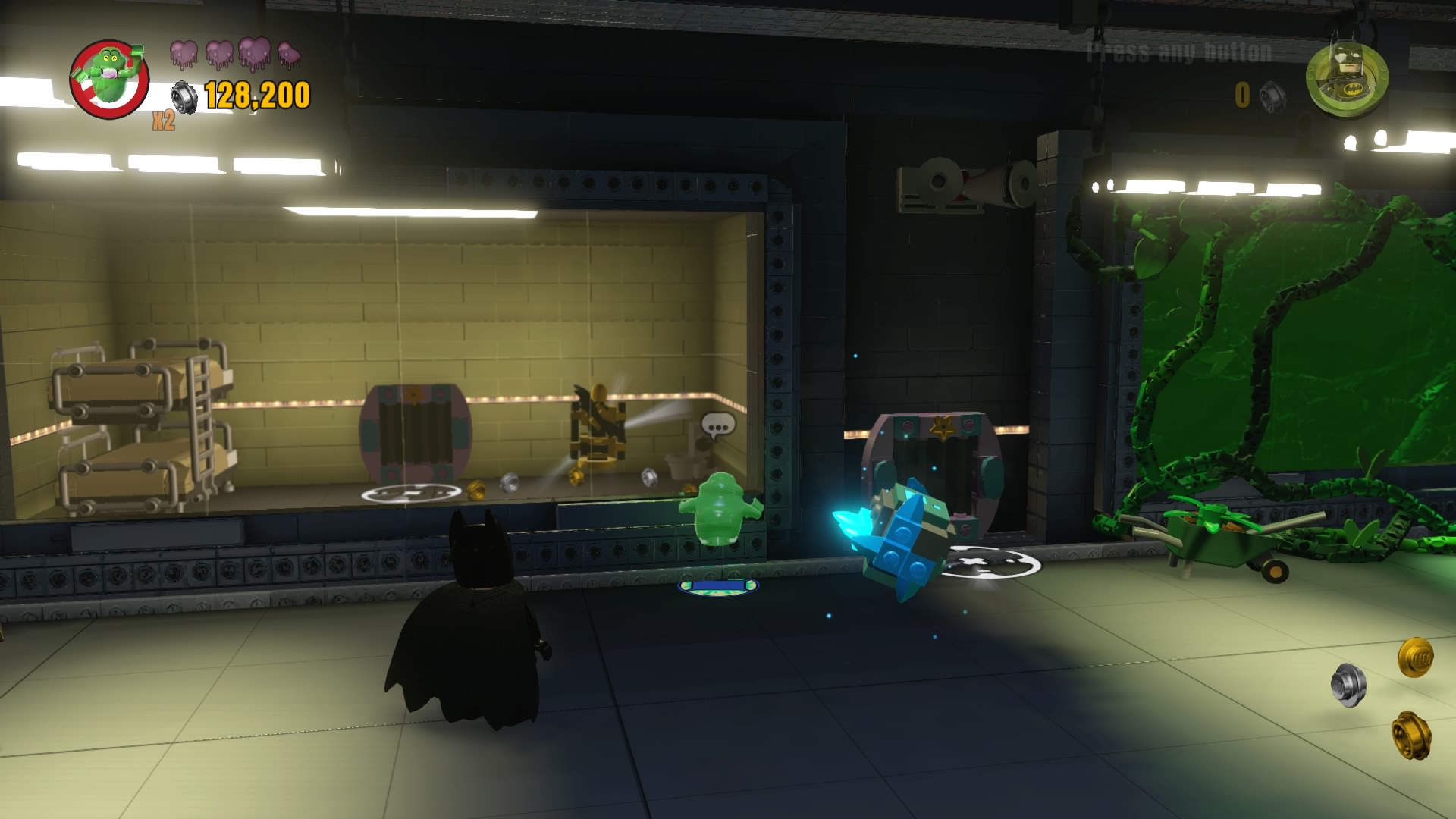 - Minikit #10: Enter the vent next to Poison Ivy’s plant-covered cell. Lumpy Space Princess, Slimer, and others can use these vents.