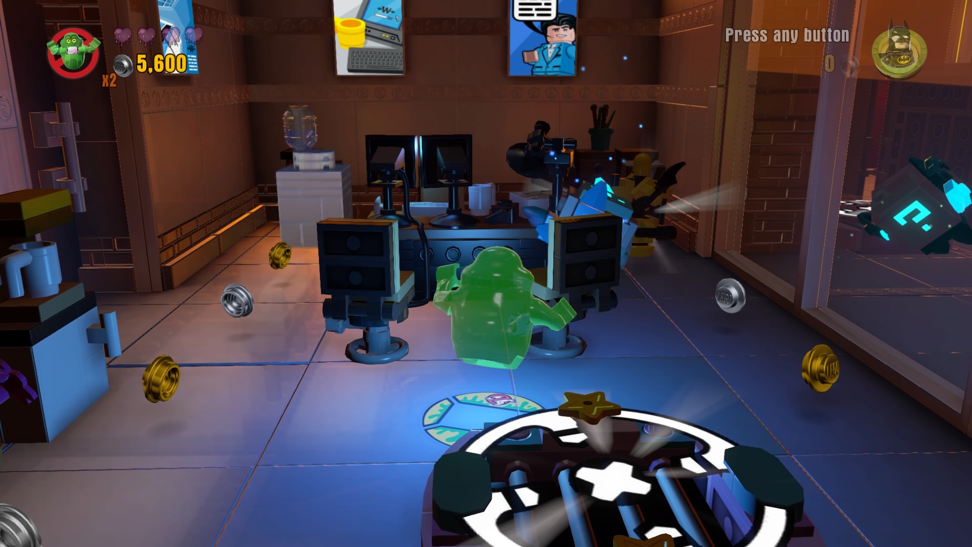 - Minikit #1: Smash the office furniture to the left of your starting spot to create a vent. Slip inside (Lumpy Space Princess, Slimer) to enter the office with the first minikit.