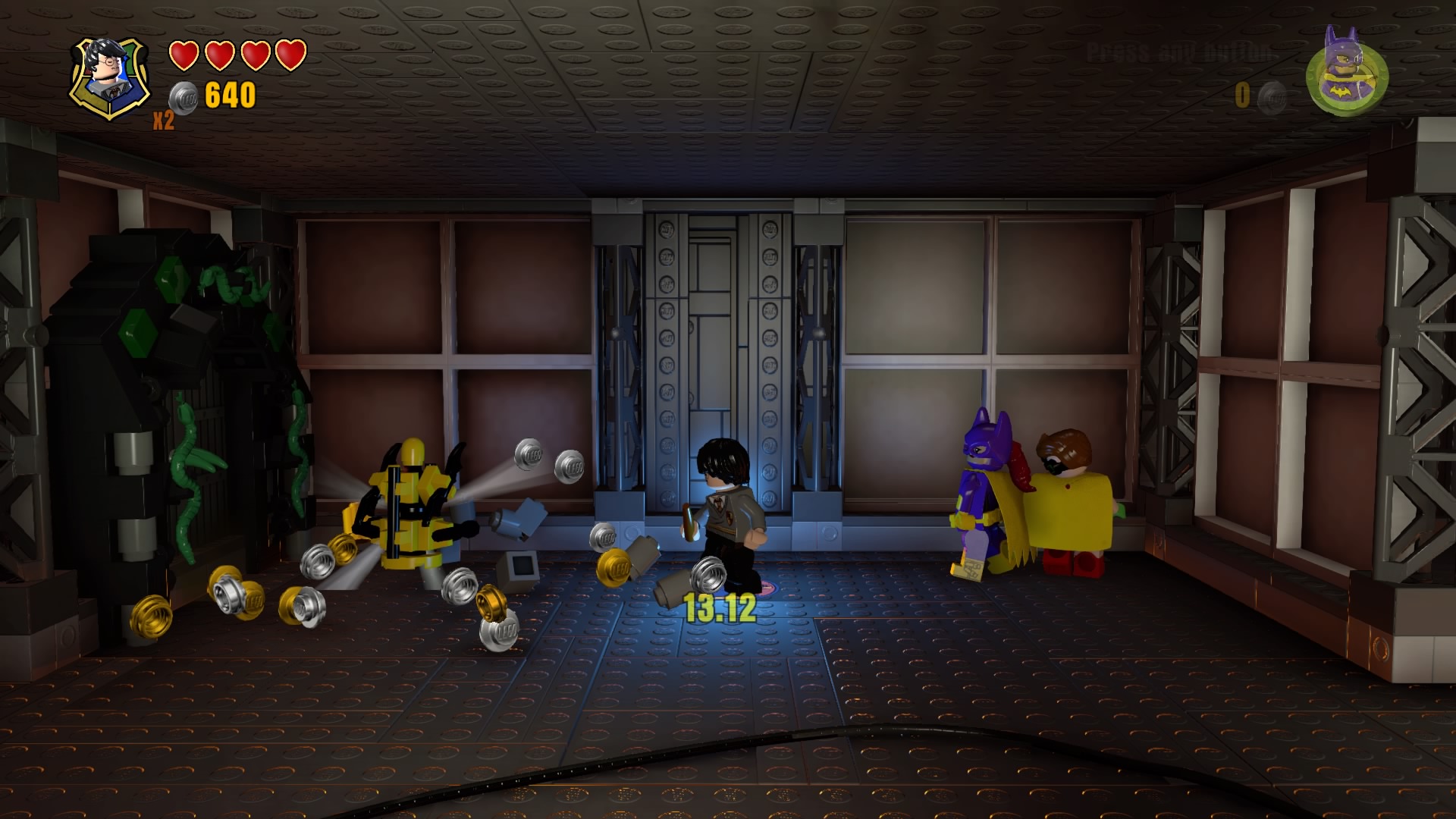 - Minikit #2: Up in the maintenance hallway, go left and use Harry Potter on the Parseltongue door. It’ll spit out the parts for a shiny minikit.