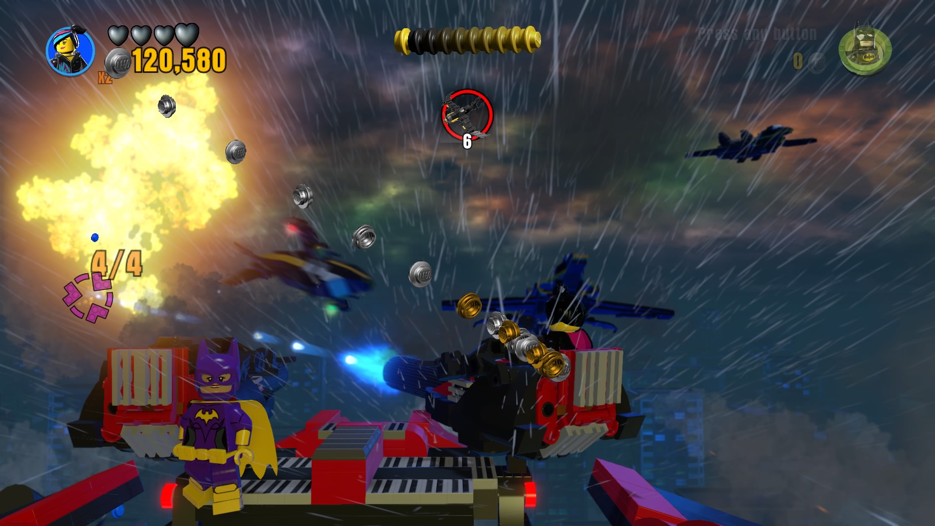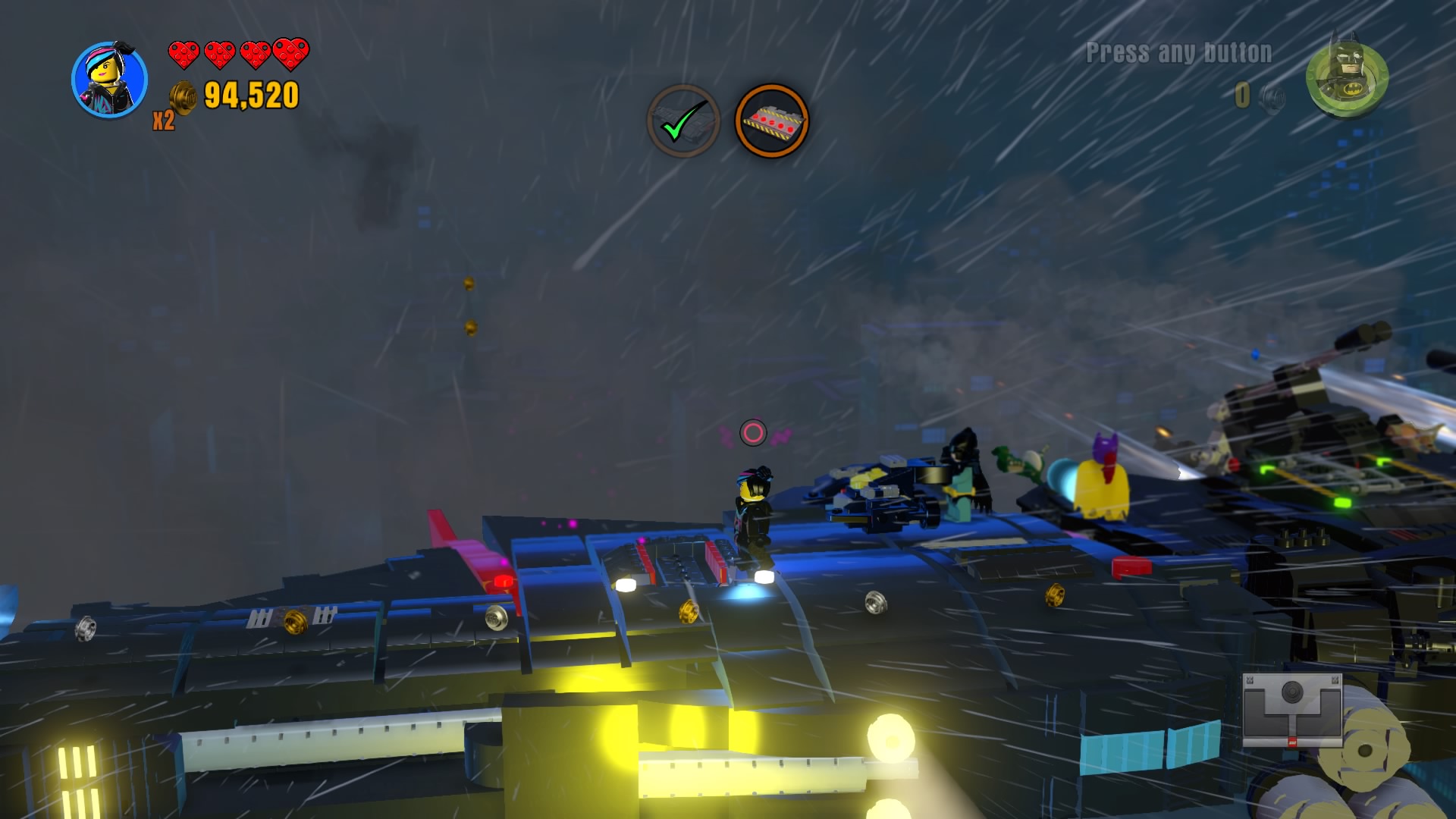 - Minikit #8: Knock all five gremlins that are hanging off the wings of the Batwing to earn this one.