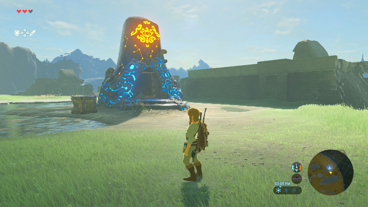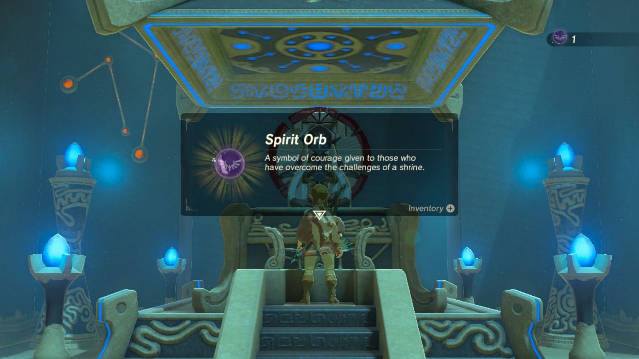 Open the giant double doors with Magnesis to complete this shrine — after speaking with the monk. He’ll reward you with (x1) Spirit Orb! Note half bad, but the friendly strange old man wants you to clear all four shrines in the region. Time to get started.