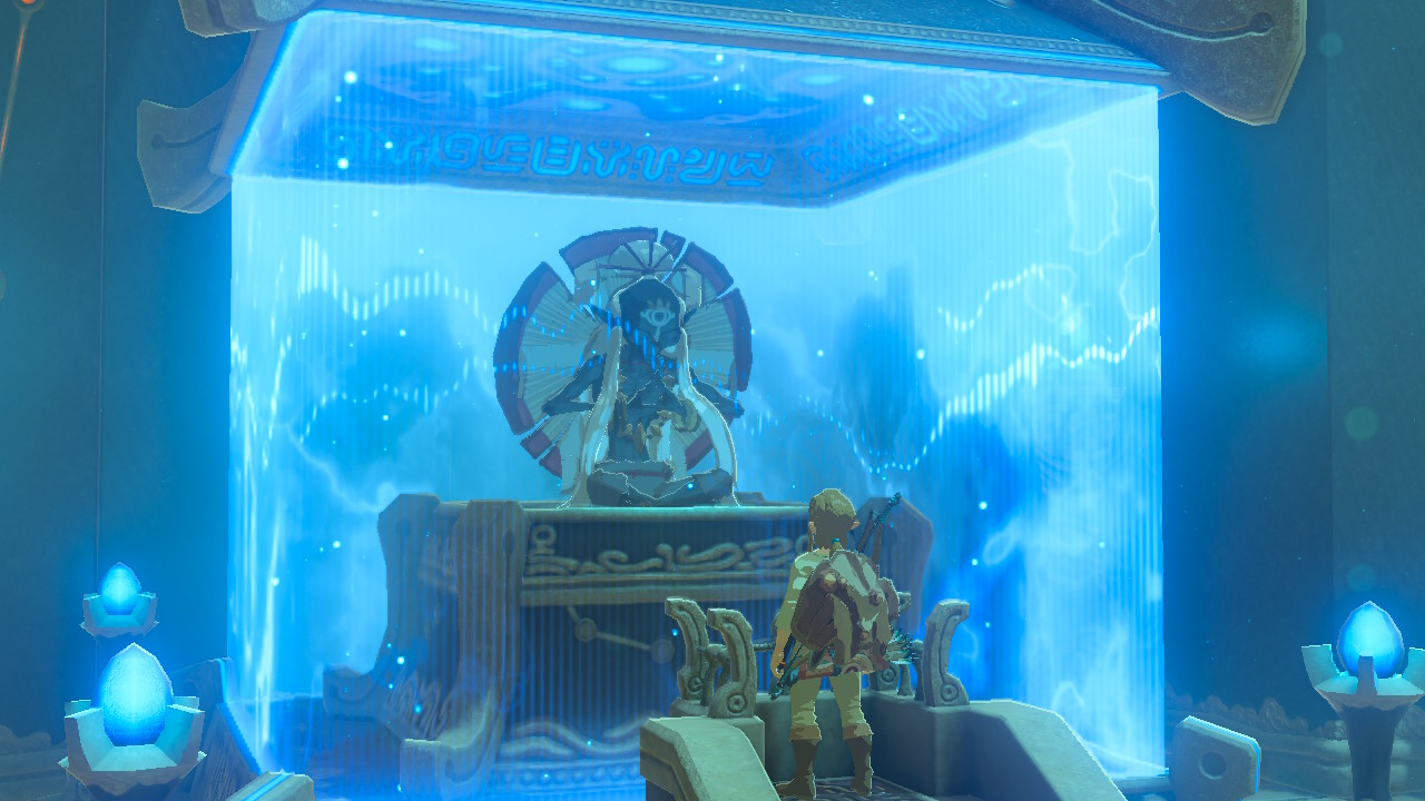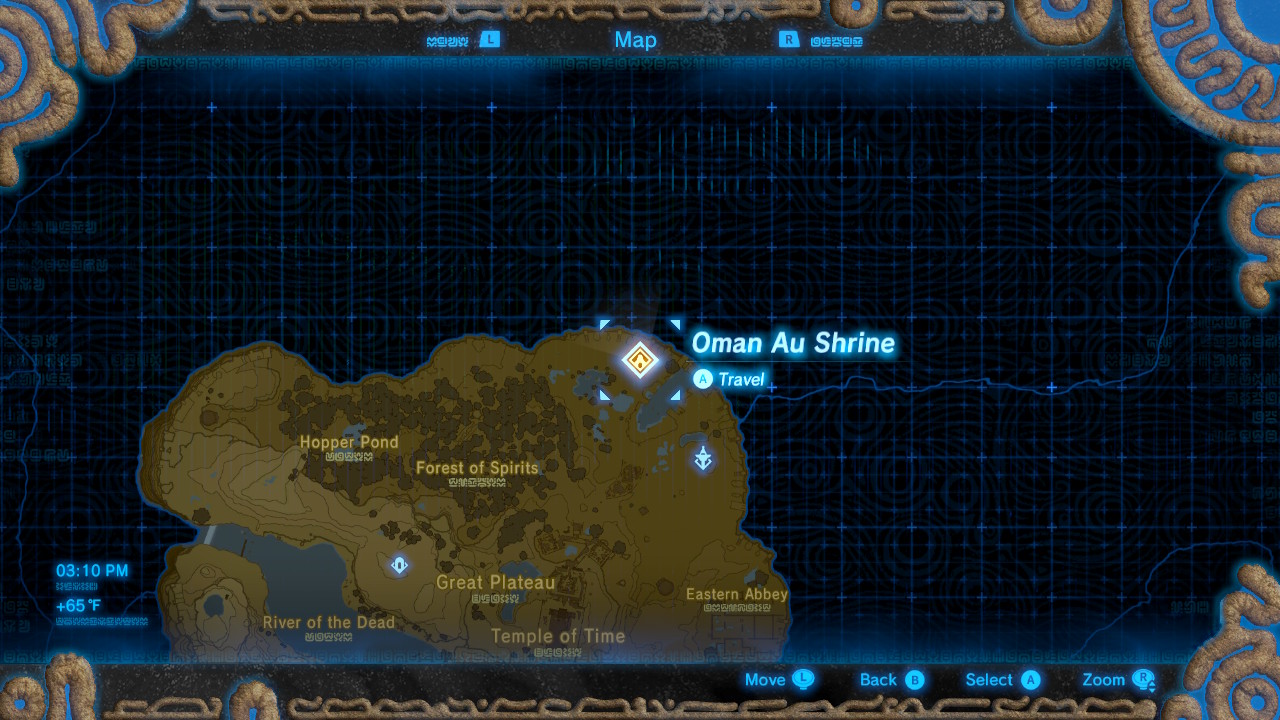 The Oman Au Shrine is the very first shrine you’ll encounter. The mysterious old man will offer you “The Isolated Plateau” — a main mission that directs you toward a strange-looking door. Approach it and input the slate to activate the shrine, then walk inside to begin the first trial.