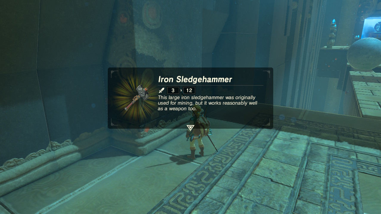 Ahead, grab the Iron Sledgehammer. There’s a huge boulder blocking the way. Freeze it with Stasis, then hit it multiple time while the boulder is frozen — enough hits will send the rock flying after Stasis is removed. Look for the pointer that appears. It gets longer the more kinetic force you apply.