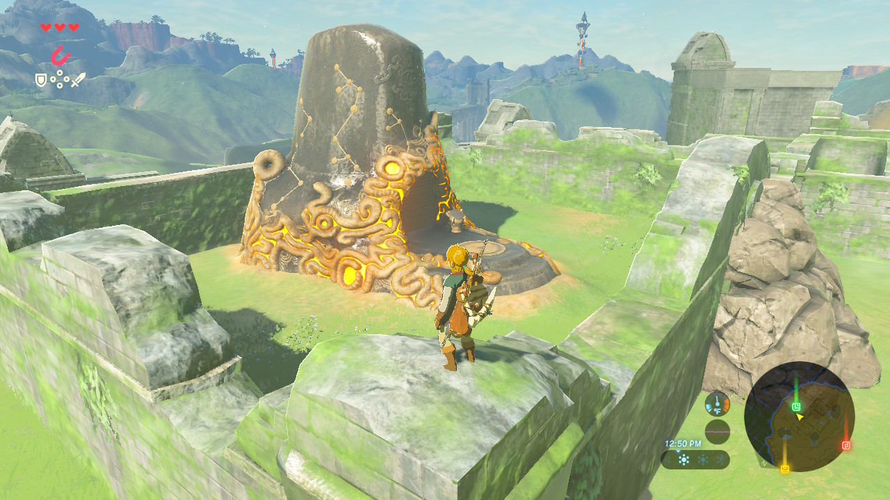 The final trial is located in the Eastern Abbey. The area is guarded by killer guardians that can blast Link in a single shot. To avoid these enemies, climb up onto the abbey walls and sneak by the guardians. Watch out for the bright red charging laser. If you’re spotted, run for cover.