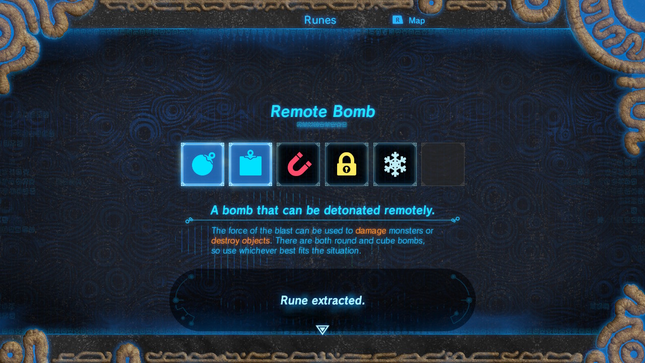The Bomb rune allows you to summon bombs that can destroy weak walls or blocks. Bombs can also damage enemies. When you summon a bomb, you can either place the bomb or throw it. A thrown bomb has a few-second long fuse. A placed bomb can be remotely detonated.