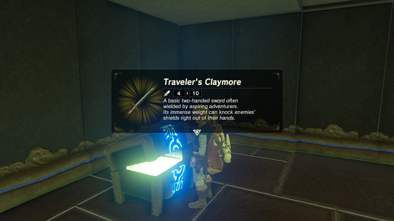 Use the bomb to destroy the first weak walls ahead. Then destroy the weak blocks on the right — there’s a chest that contains a Traveler’s Claymore inside. Continue to blow apart walls until you climb a ladder and reach the next puzzle.