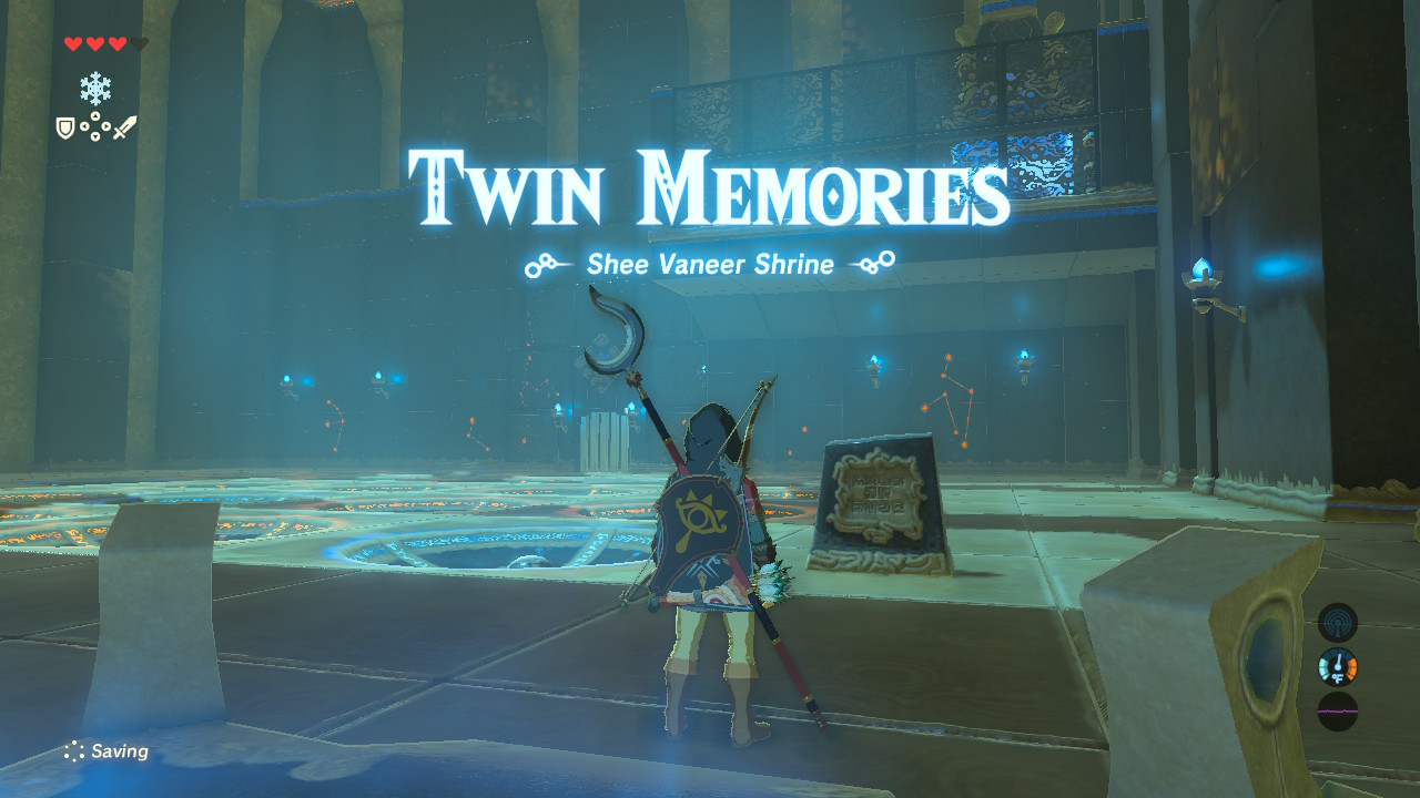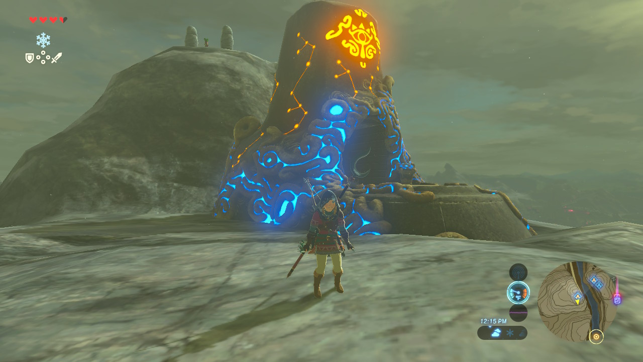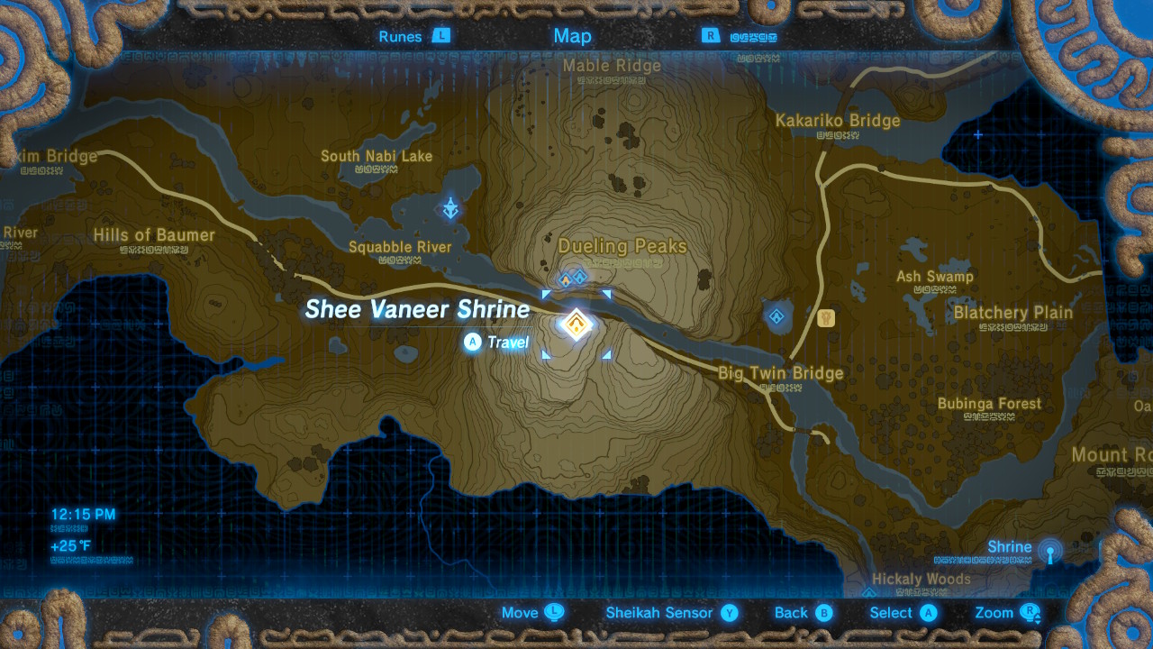 The second of the two Dueling Peaks Shrines. This one is found at the very top. The two shrines feature answers for the opposite’s puzzle. Find the solution for Shee Vaneer in the Shee Venath Shrine, or check out the solution below.