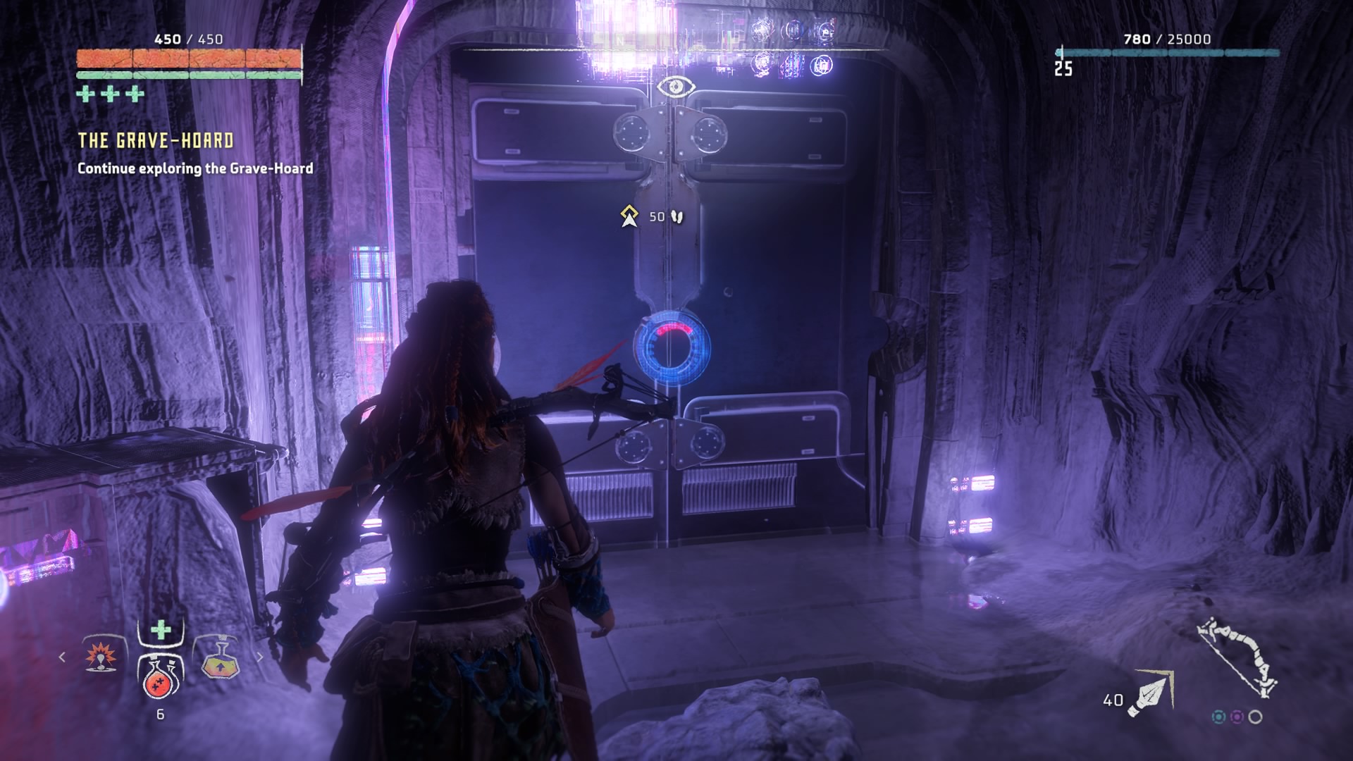 Now you’re down in a bunker. This part is pretty simple, just explore the cave and follow the marker. Eventually you’ll come across another hole with a zipline, jump up to descend further into the ruins. Ignore the locked door you come across and keep exploring. When you walk into the room with all of the locks, use your scanner to detect the combination. Jump down the next level and do the same, except you’ll have to scan a holopoint for the combination this time. Walk across the room and scan the terminal again for the last set of locks.