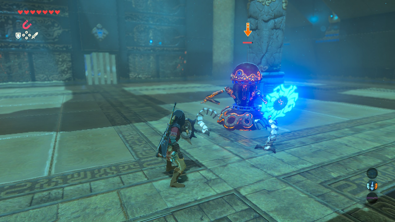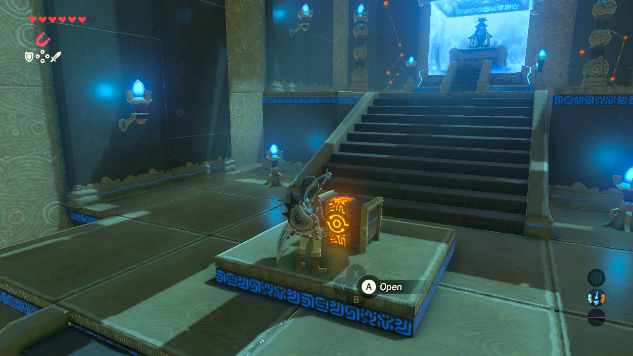 At low health, the Guardian retreats and charges a deadly beam attack. Rush forward and attack with your strongest weapon to defeat this thing. When it’s down, the door to the altar and a free chest will open.