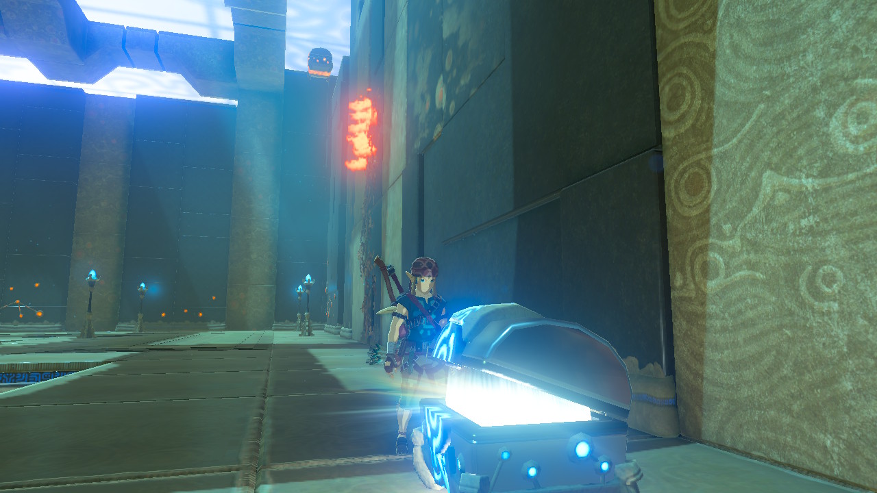- Optional Chests: There are two optional chests on wooden platforms high in the back walls of the shrine. Shoot the wooden platforms with fire arrows, or shoot regular arrows through the torches — that’ll break those flimsy wooden boards.