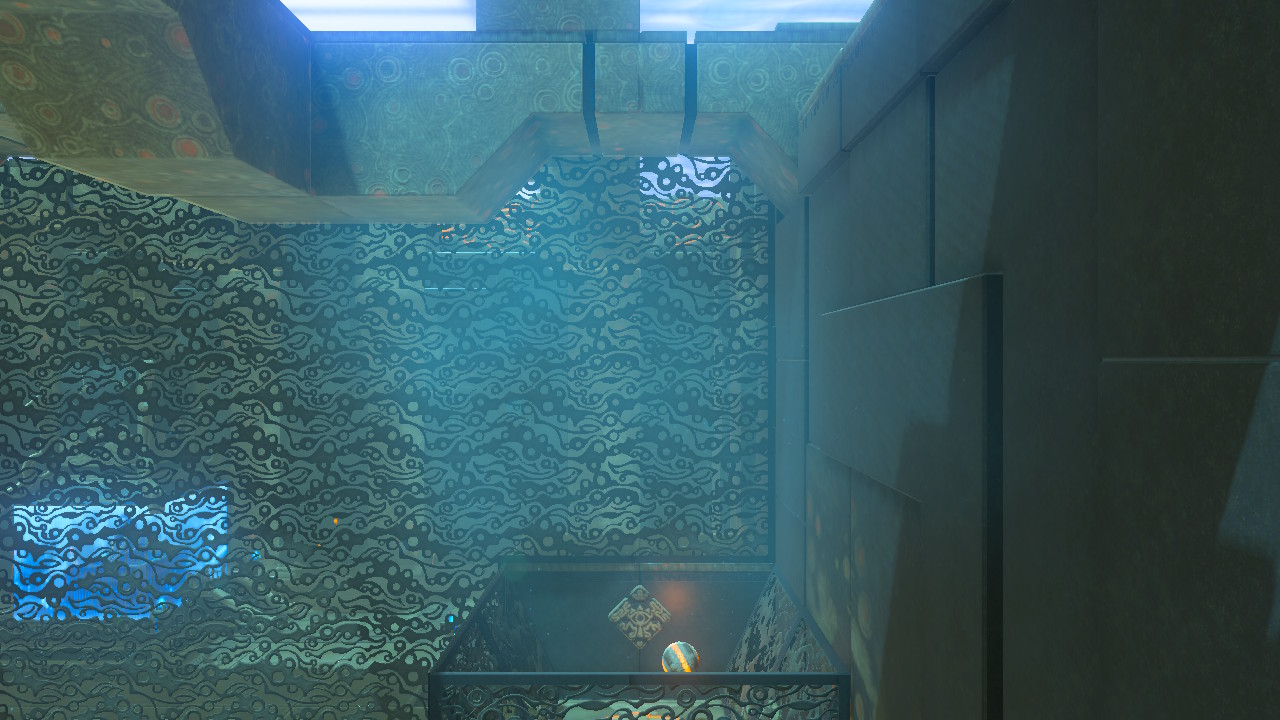 For the second room, bring that same metal scoop with you. Dump an orange ball (or two, or three) onto the caged funnel input, then drop the metal scoop onto the underwater button. The cage will open and drop an orange ball into the funnel.