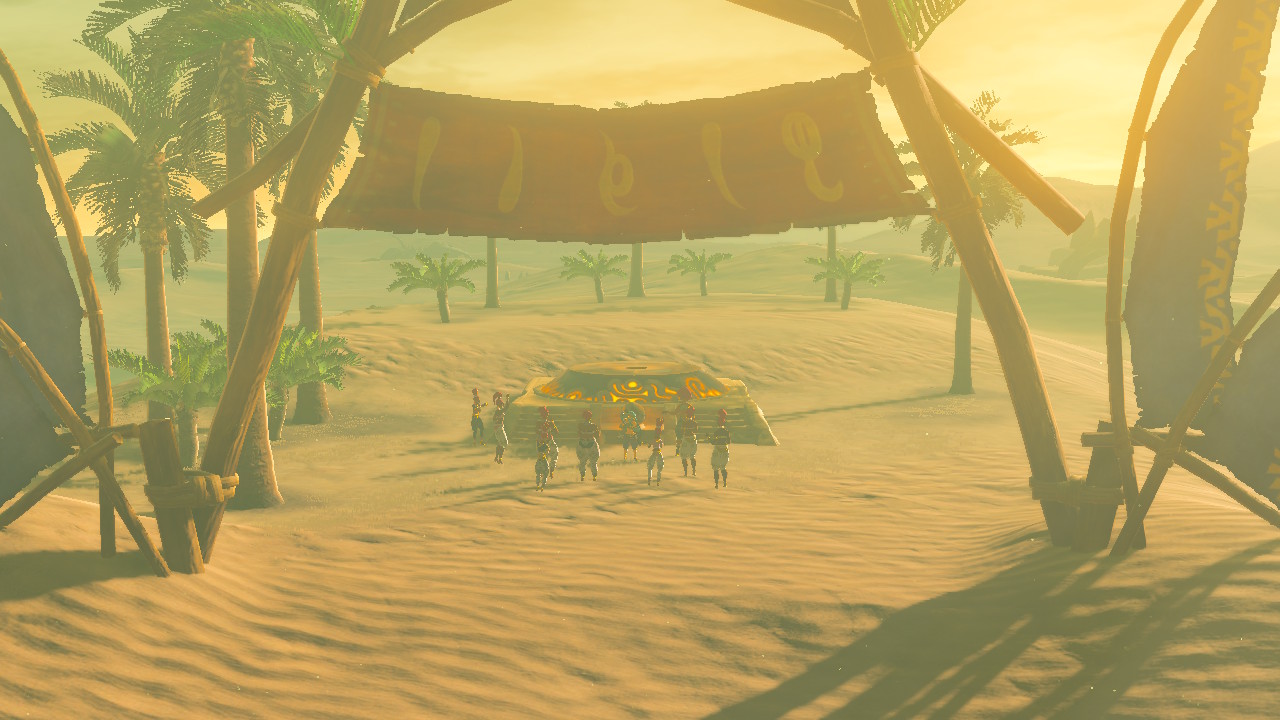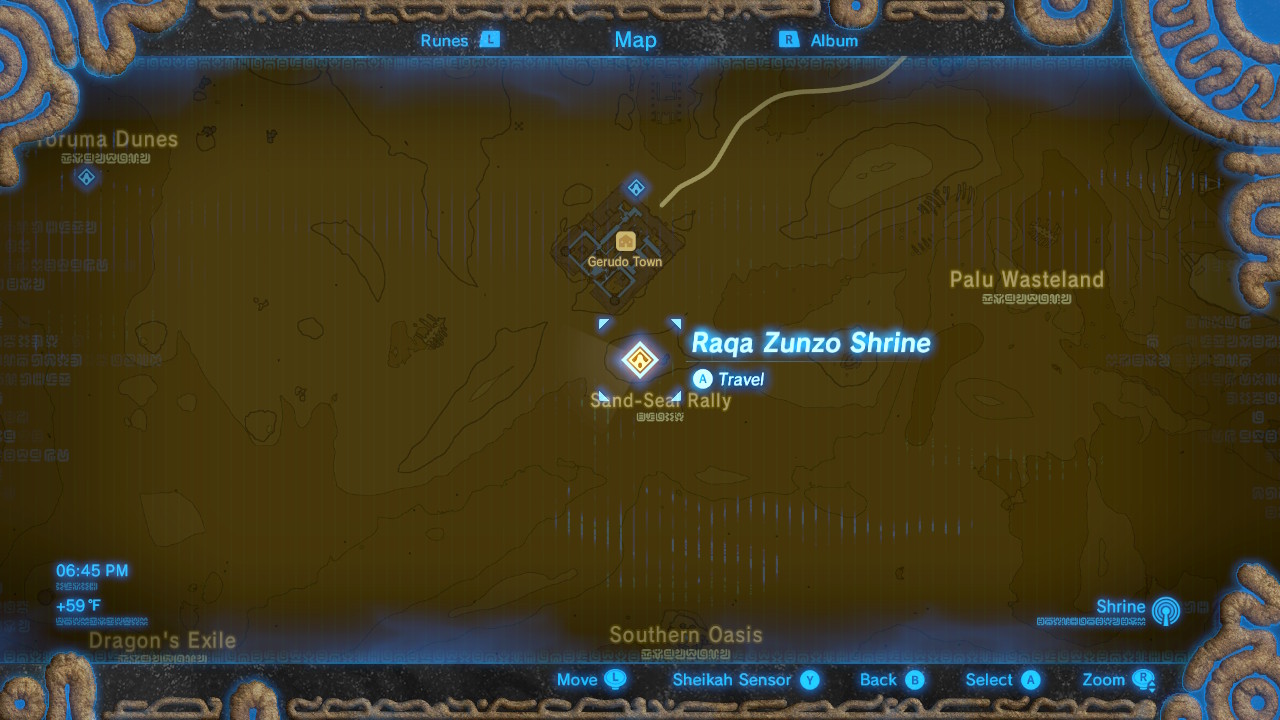 This shrine is only available after completing the Vah Naboris dungeon. When that quest is complete, travel south from Gerudo Town to find the Sand-Seal Rally. Talk to the proprietor, Shabonne, and accept her challenge — this is a Sand Seal race track, and victory gives you access to an ancient orb to activate this particular shrine.