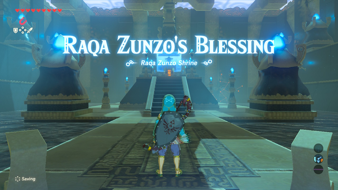 If you’re able to win, grab the glowing ancient orb and place it in the pad to open up this hidden shrine. Like many of the others that require shrine quests, this is a “blessing” — no puzzles, and a free chest.