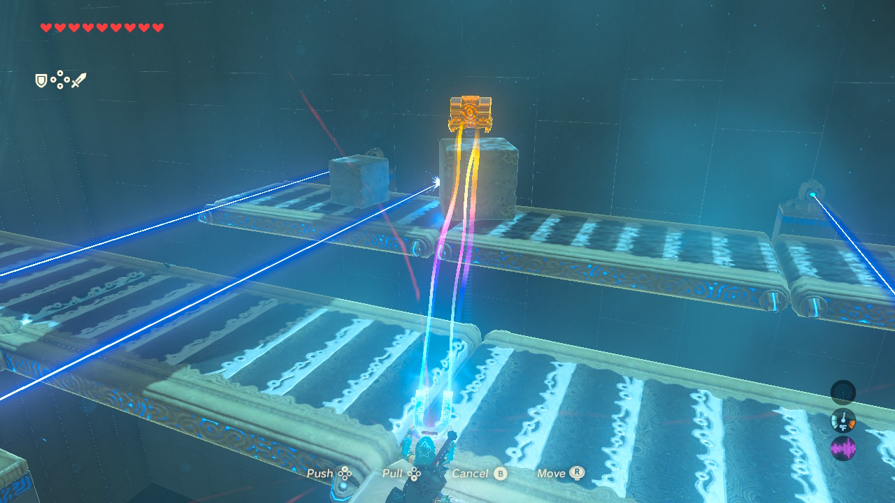 - Optional Chest: A chest appears on the conveyor below in the third room. Grab it with Magnesis before it falls off the edge. Don’t worry if you miss it, it does respawn.