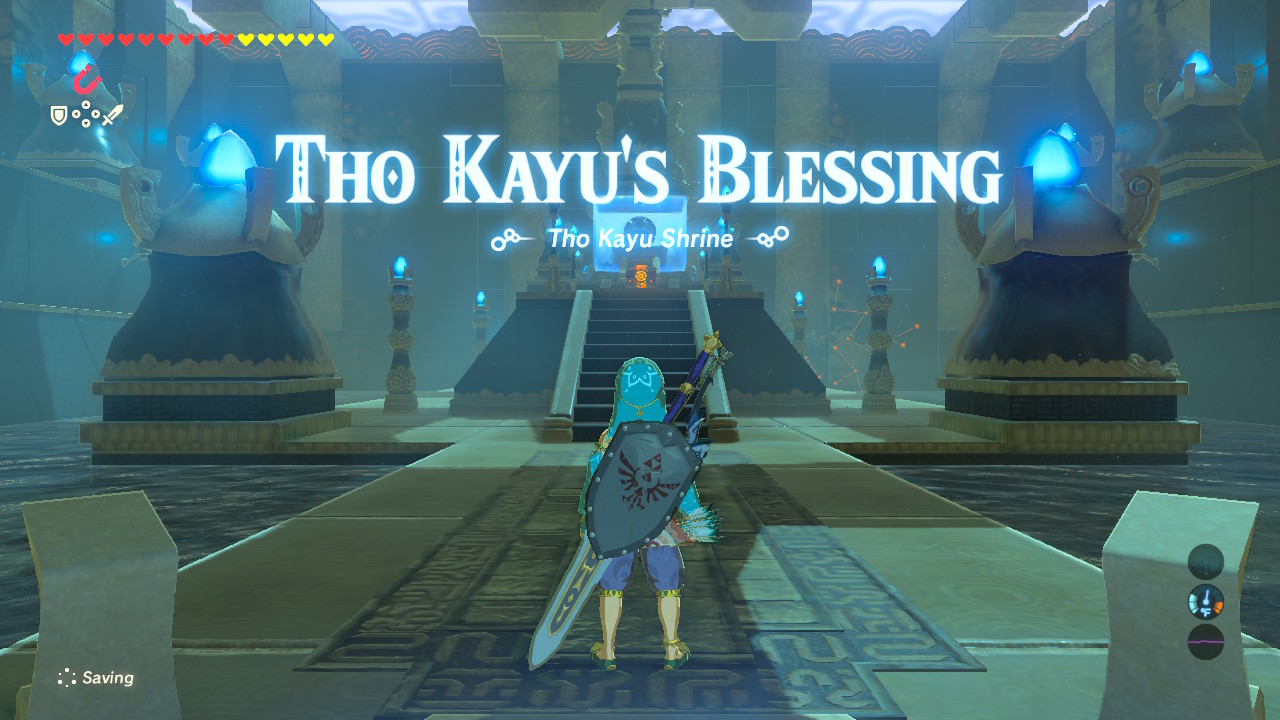 For all your hard work, there’s no puzzle in the shrine itself. You’re free to collect the treasure chest and examine the altar.