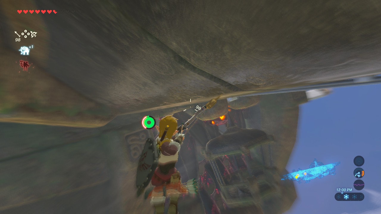 Aim for the eye — if you can land three consecutive shots on the glowing blue eye, you’ll stun Windblight Ganon for a short period, leaving it vulnerable to attacks.