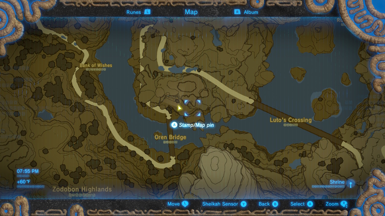 Finding them all takes a lot of time. To make life easier for Link, we’ve snapped shots of each monument location you’ll need. There are actually eleven monuments, counting the stone slab in the Zora’s Domain, but only ten are absolutely required. One of the monuments even reveals the location of the Zora Armor helmet. For the record, the helmet is in Toto Lake, in a submerged treasure chest you can collect with Magnesis.