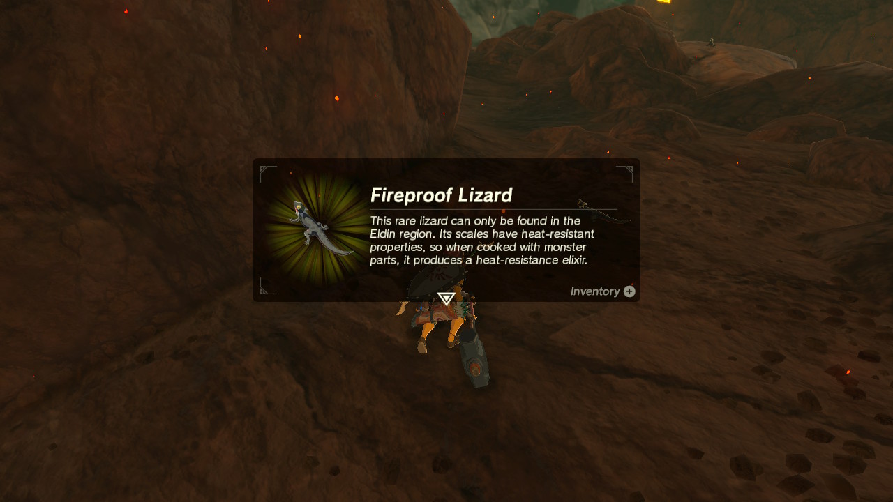- There are plenty of fireproof lizards in the area. Crouch and sneak so they don’t run away.