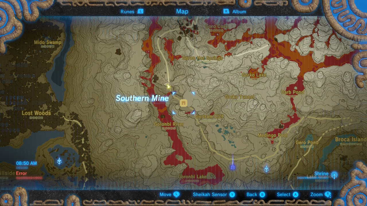 - Southern Mine — Reach the mine near Gortram Cliff on the road to Goron City to begin the side quest “Fireproof Lizard Roundup.”